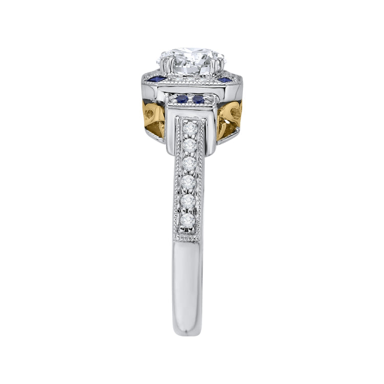 14K Two-Tone Gold Round Diamond and Sapphire Engagement Ring (Semi-Mount)