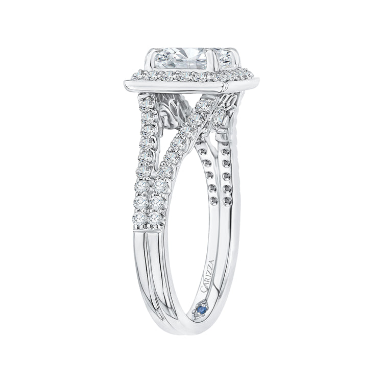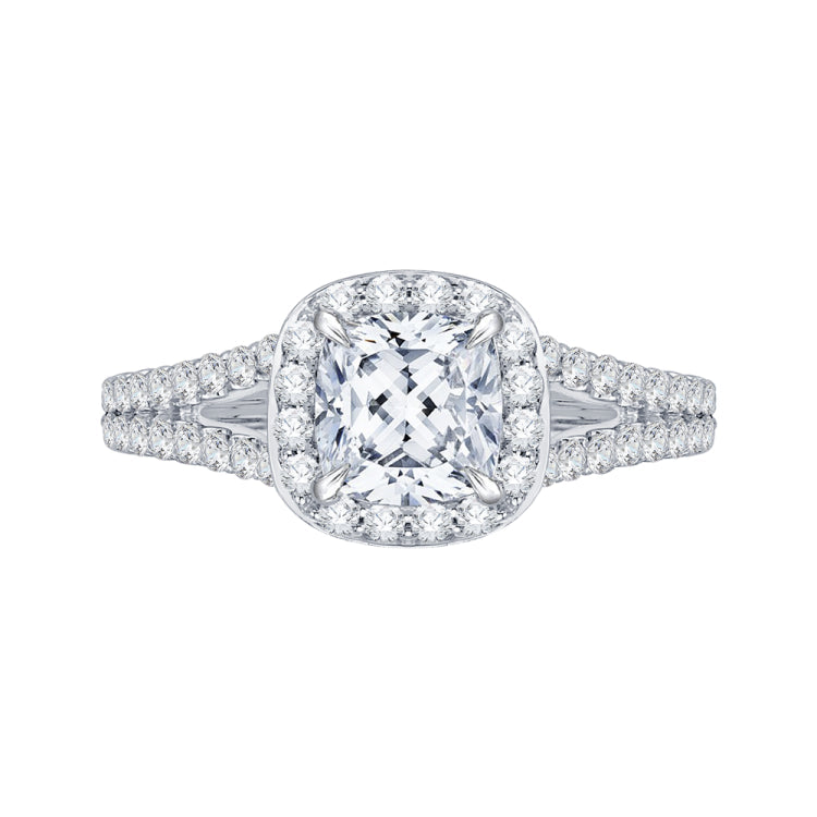 14K White Gold Cushion Cut Diamond Halo Engagement Ring with Split Shank (Semi-Mount)