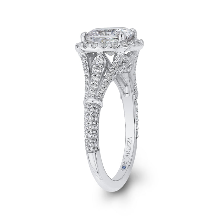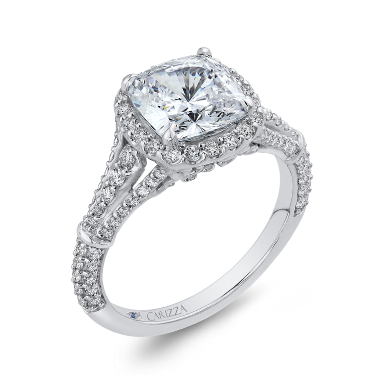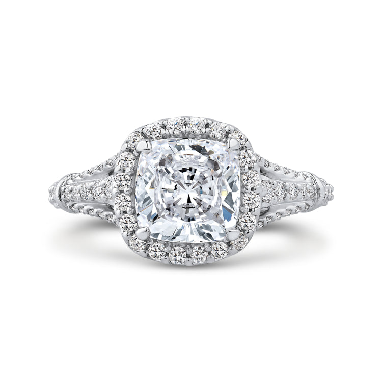 14K White Gold Cushion Diamond Halo Engagement Ring with Split Shank (Semi-Mount)
