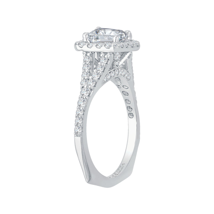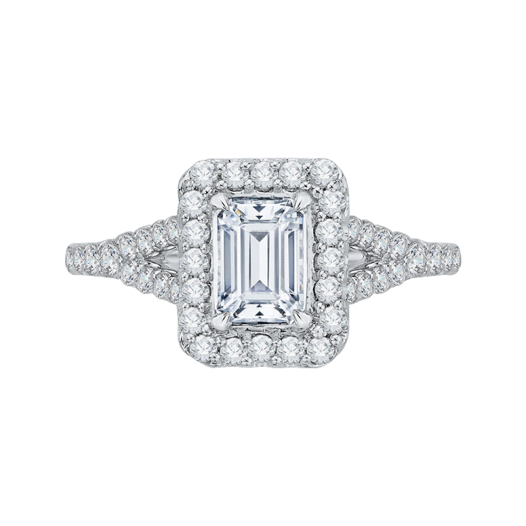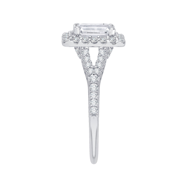 14K White Gold Emerald Cut Diamond Halo Engagement Ring with Split Shank (Semi-Mount)