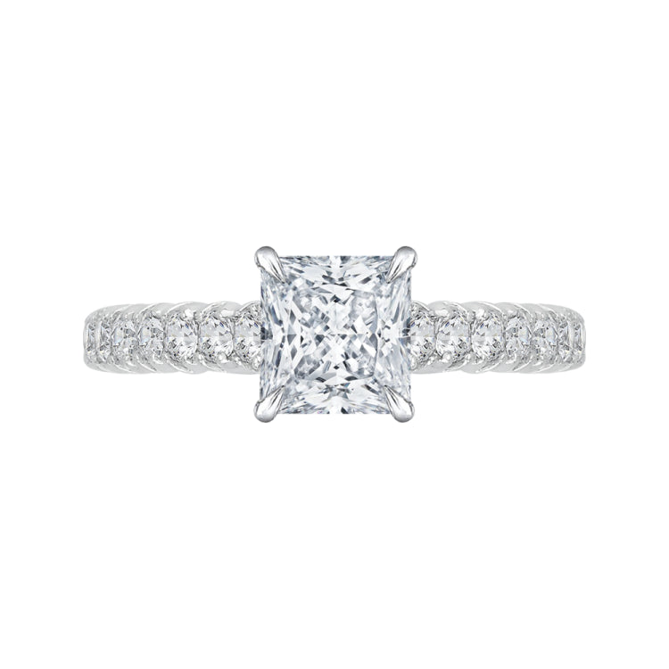 14K White Gold Princess Cut Diamond Cathedral Style Engagement Ring (Semi-Mount)