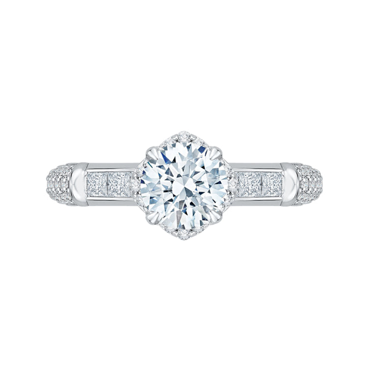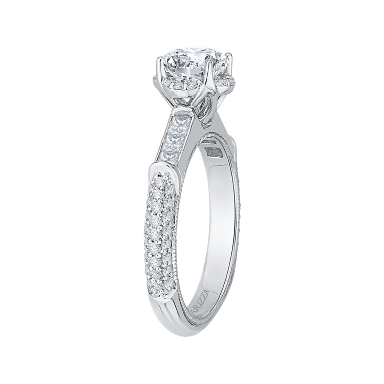 14K White Gold Round Cut Diamond Engagement Ring (Semi-Mount)