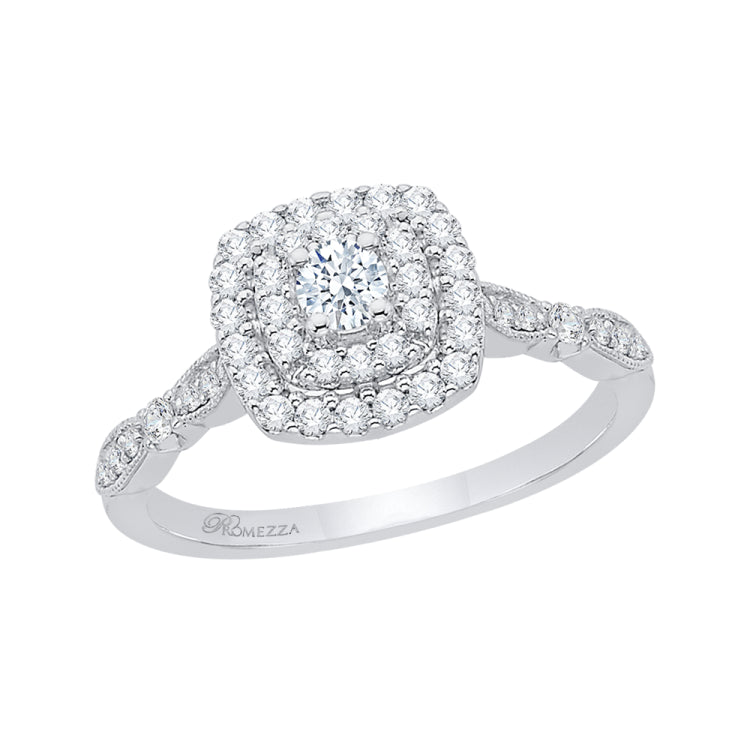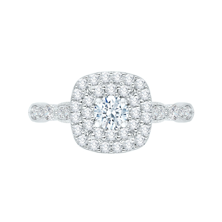 14K White Gold Round Diamond Double Halo Engagement Ring