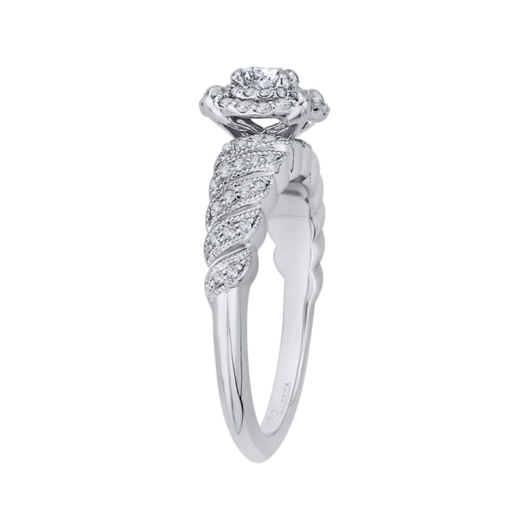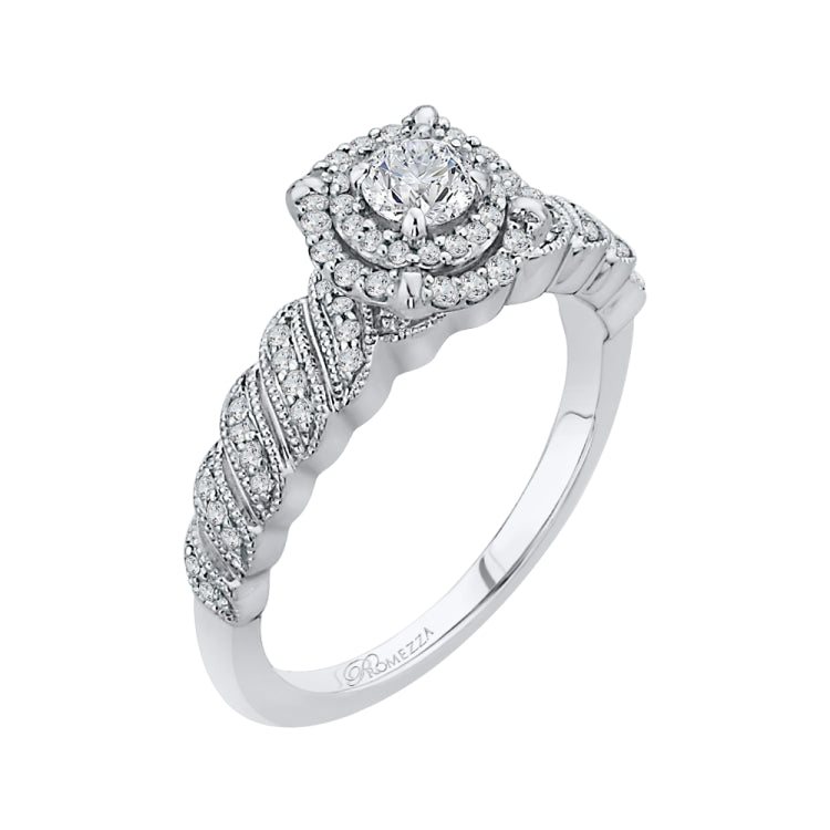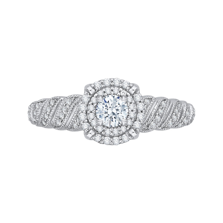 14K White Gold Round Diamond Double Halo Floral Engagement Ring