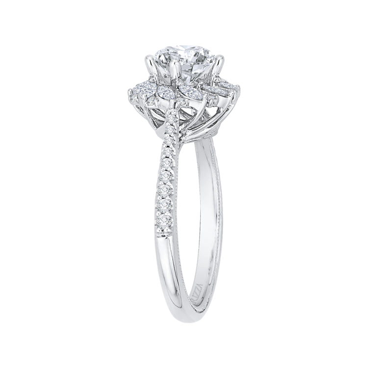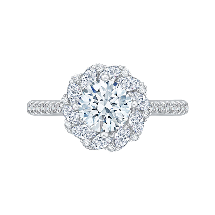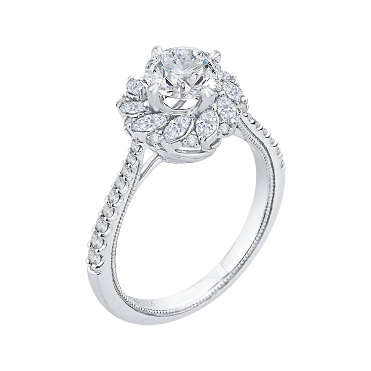 14K White Gold Round Diamond Floral Engagement Ring (Semi-Mount)