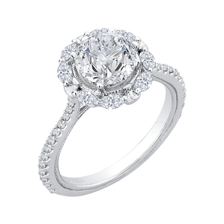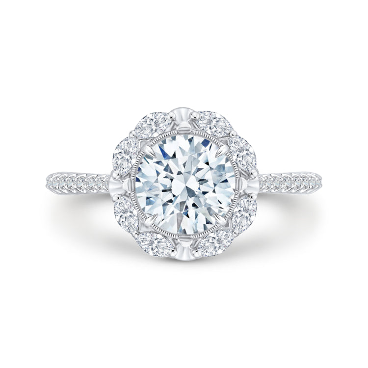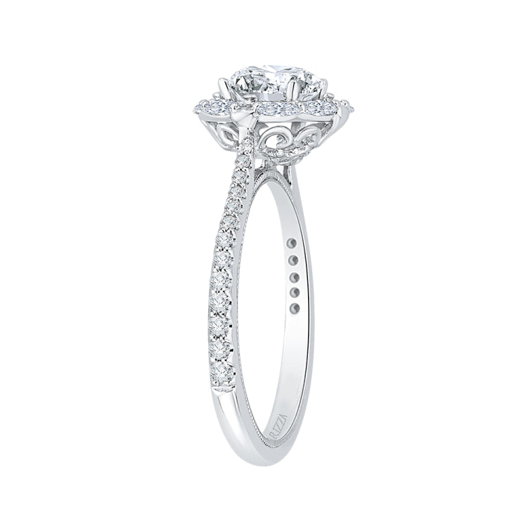 14K White Gold Round Diamond Halo Engagement Ring (Semi-Mount)