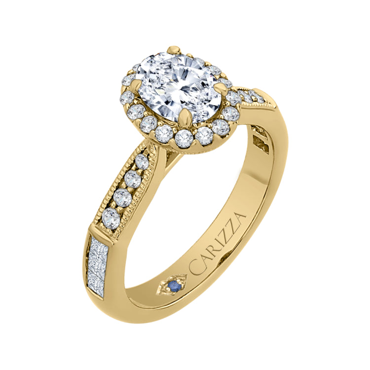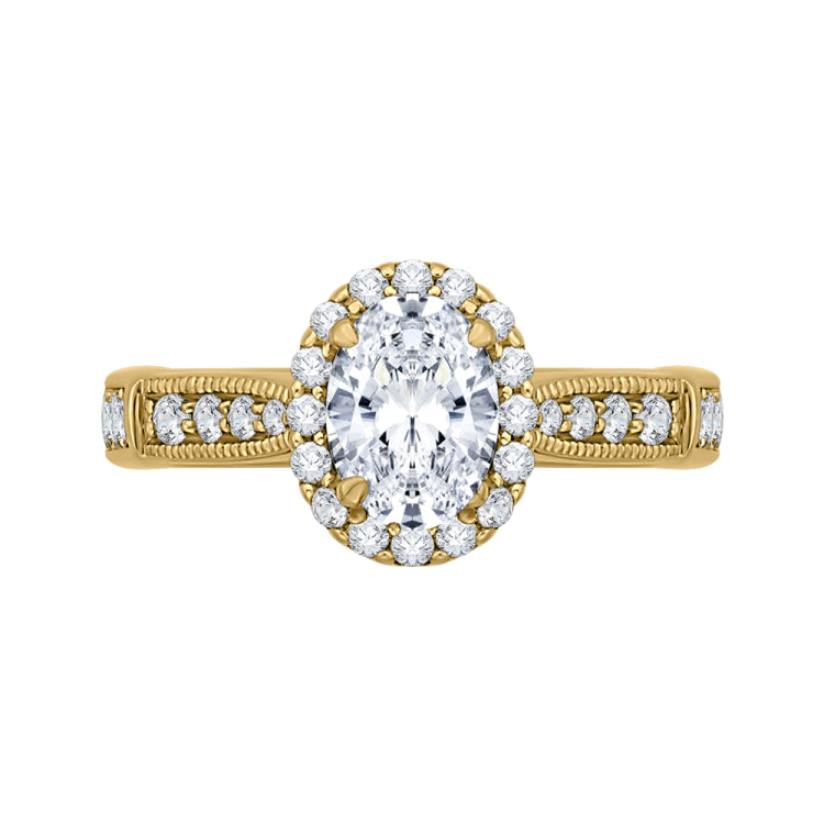 14K Yellow Gold Oval Diamond Halo Engagement Ring (Semi-Mount)