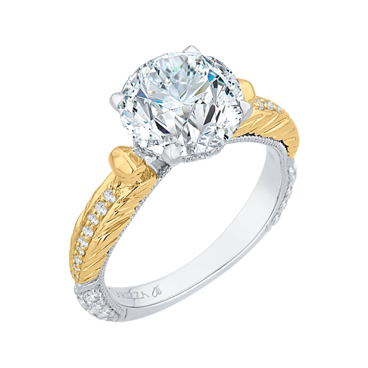 18K Two-Tone Gold Round Diamond Engagement Ring (Semi-Mount)