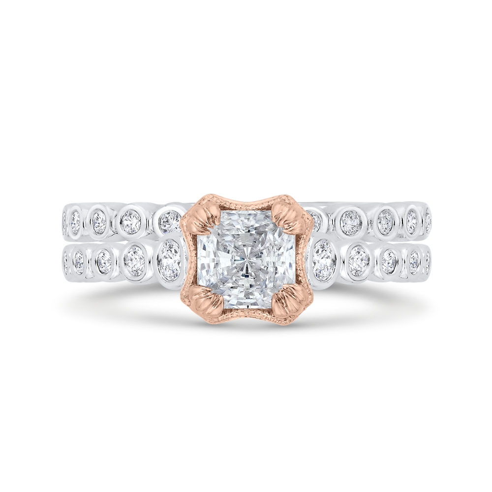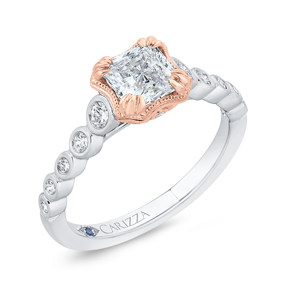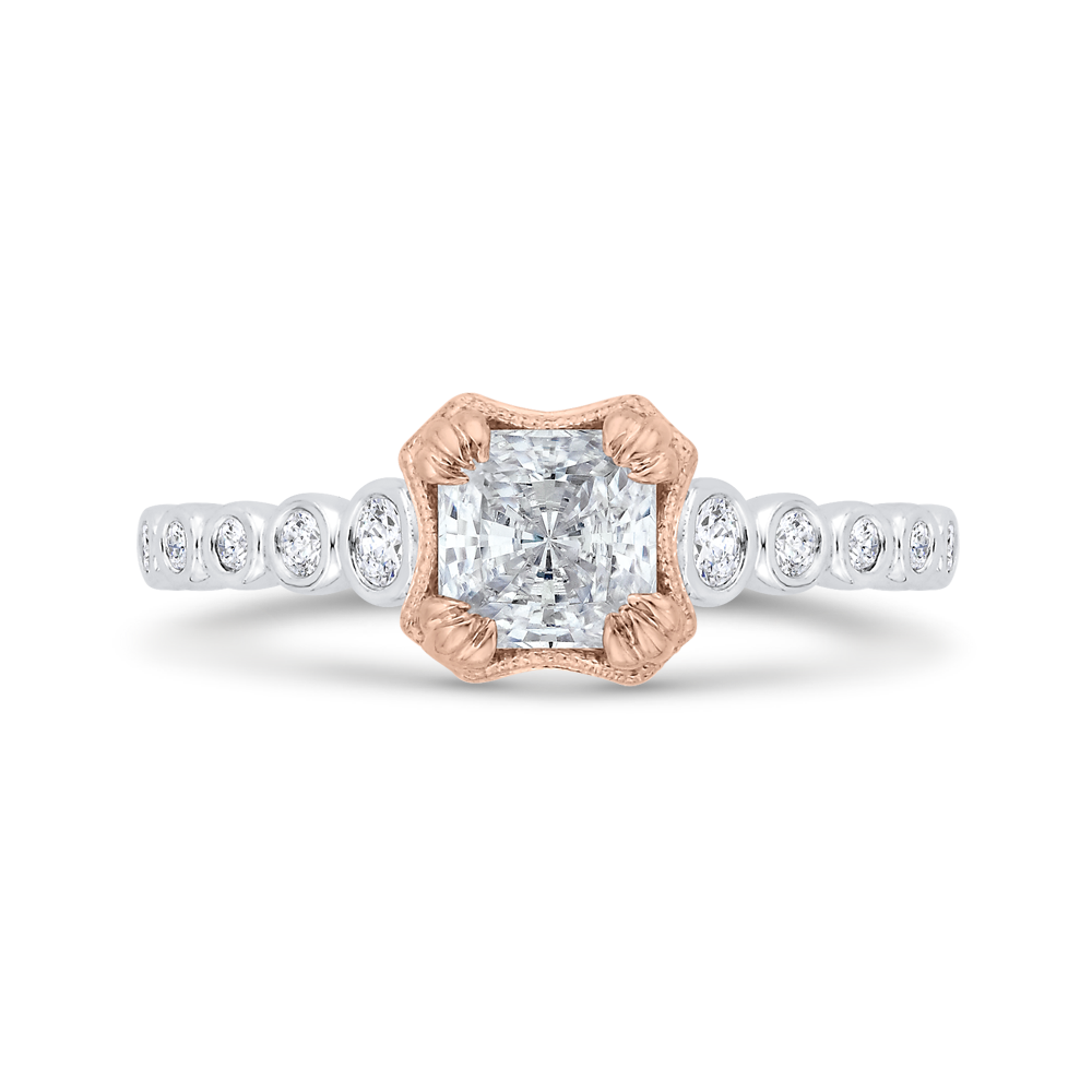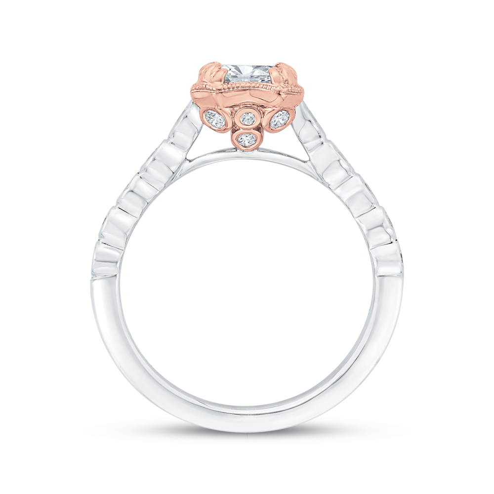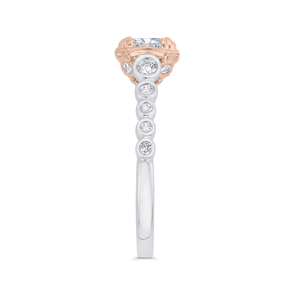 Bezel Set Diamond Engagement Ring with Round Shank in 14K Two Tone Gold (Semi-Mount)