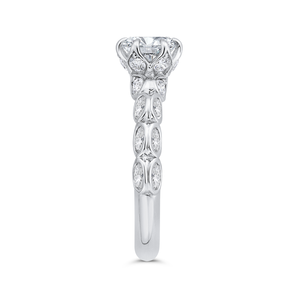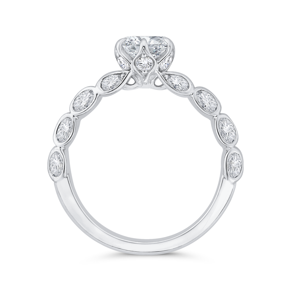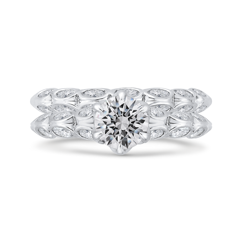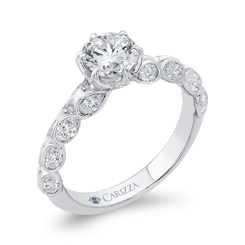 Bezel Set Double Row Round Diamond Engagement Ring in 14K White Gold (Semi-Mount)