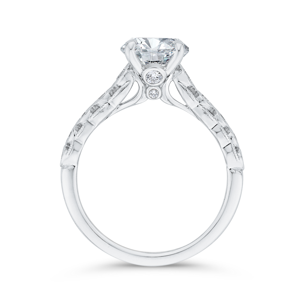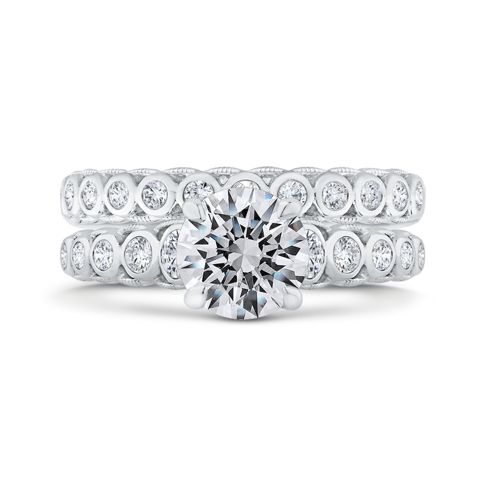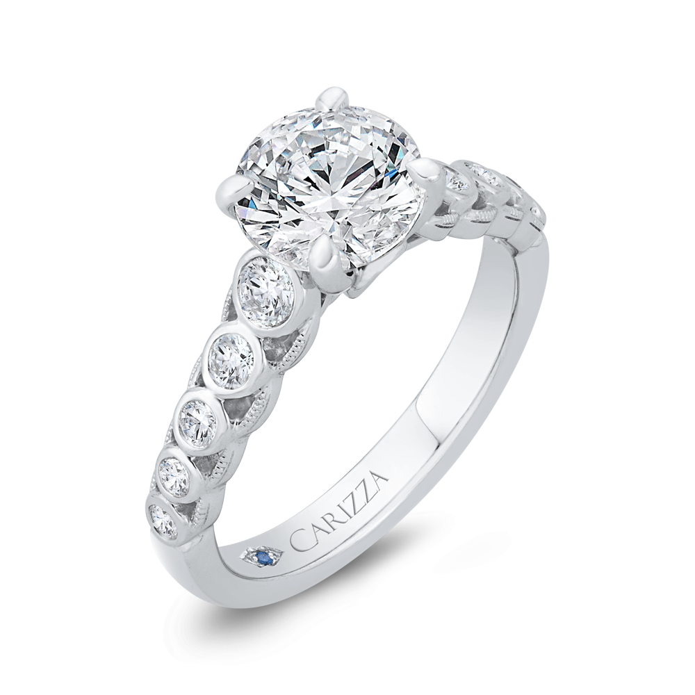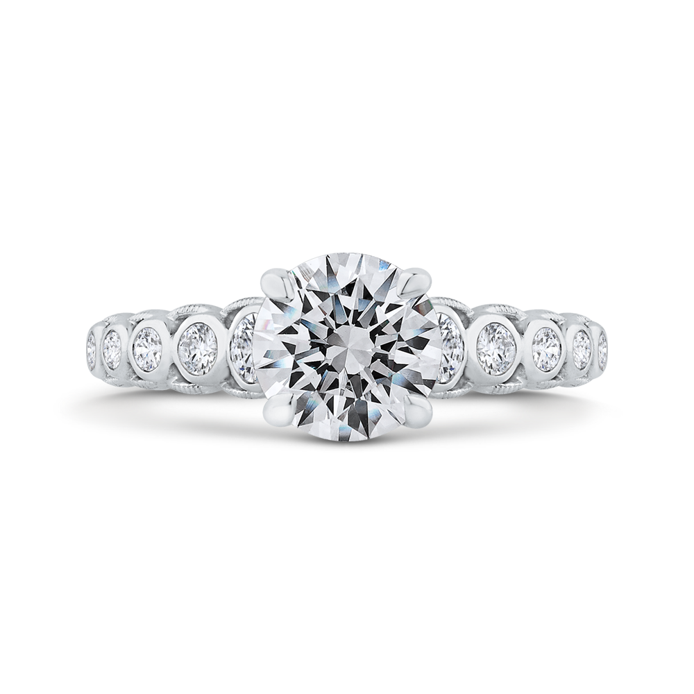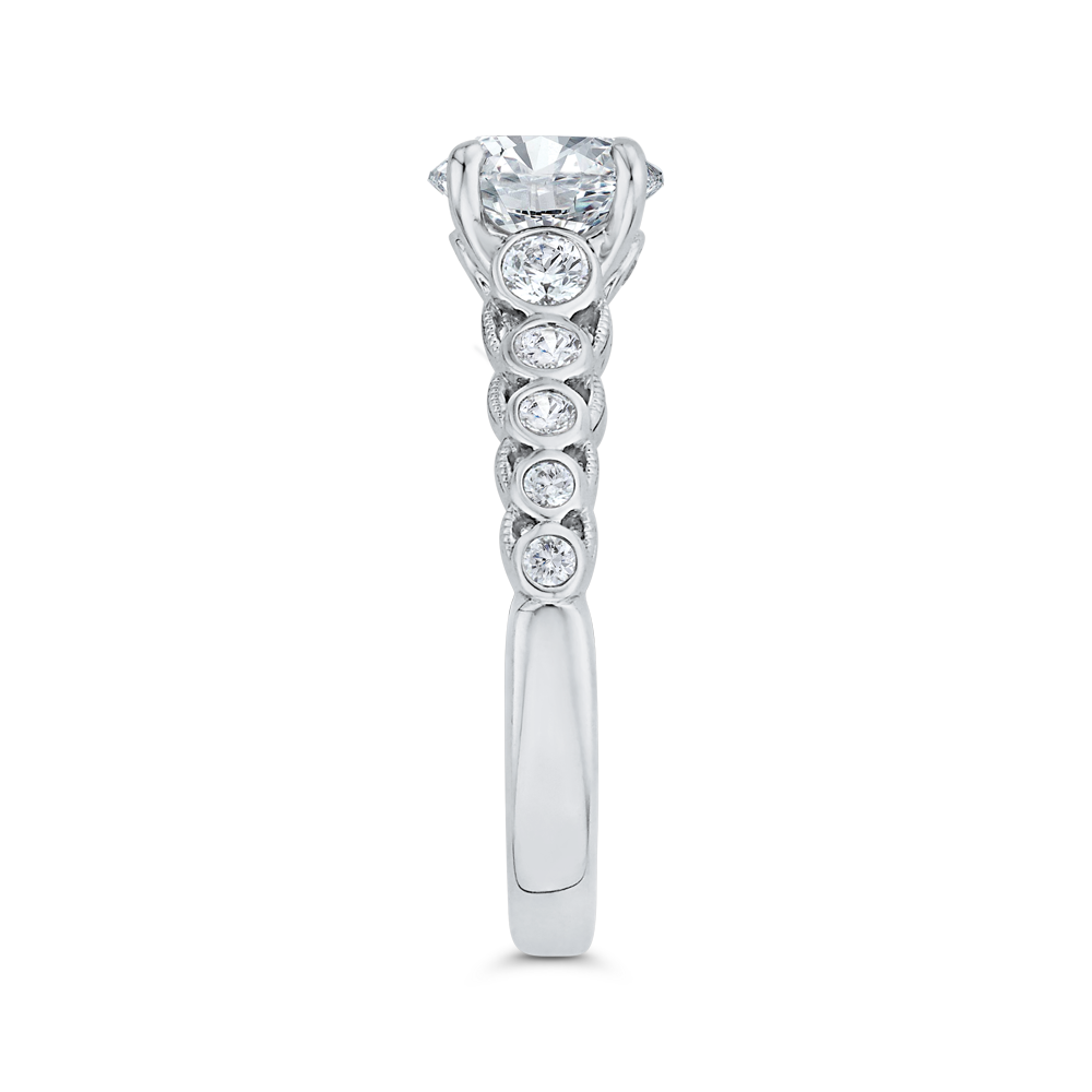 Bezel Set Round Diamond Engagement Ring with Milgrain 14K White Gold (Semi-Mount)