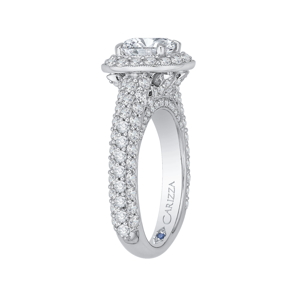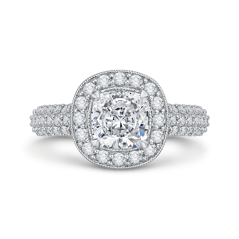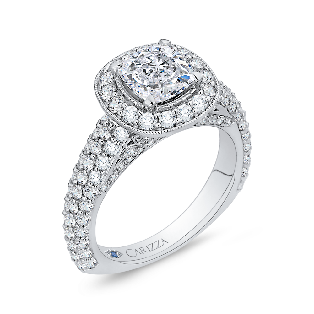 Cushion Cut Diamond Halo Cathedral Style Engagement Ring in 14K White Gold (Semi-Mount)