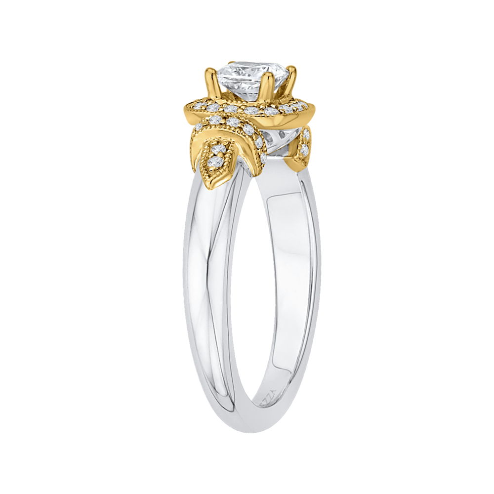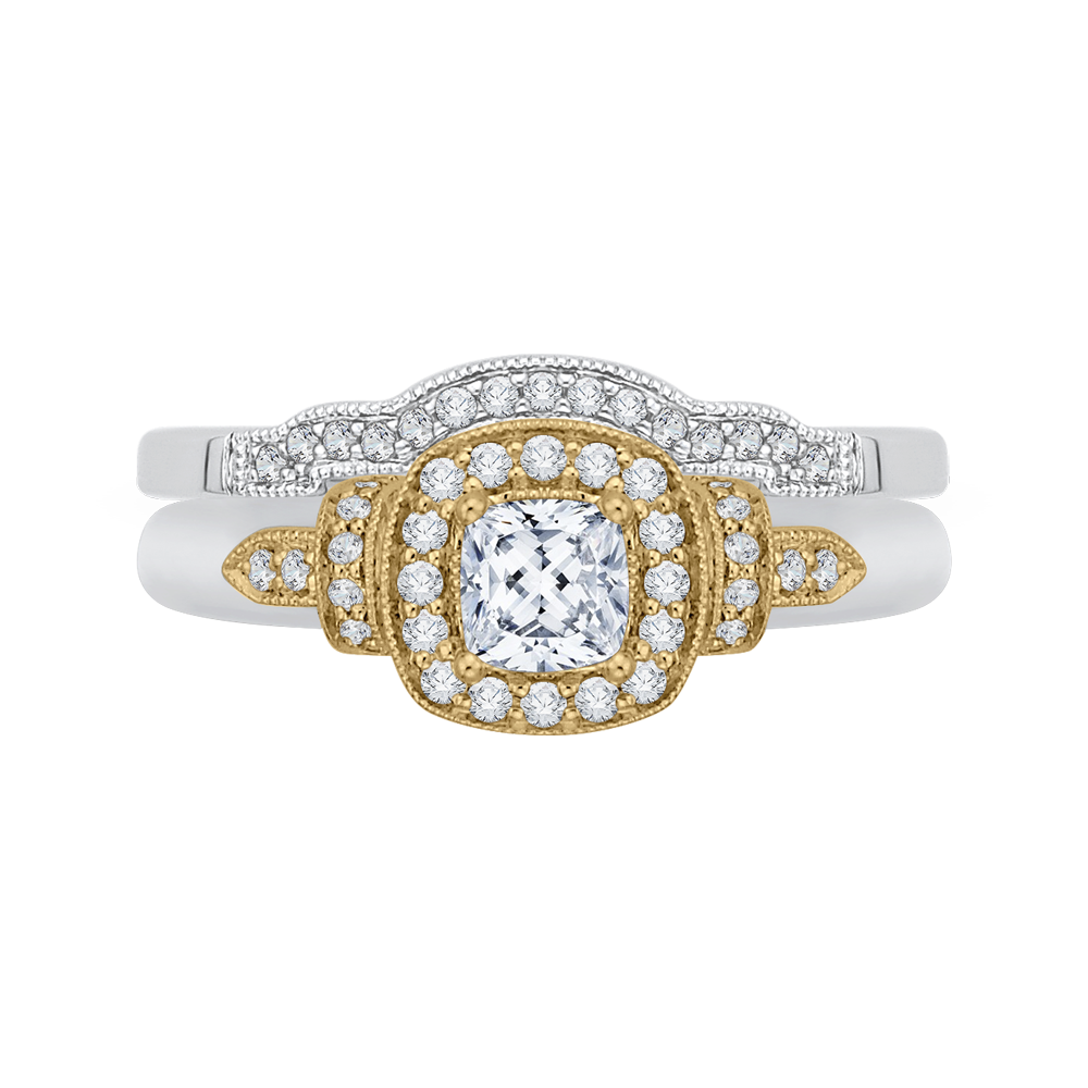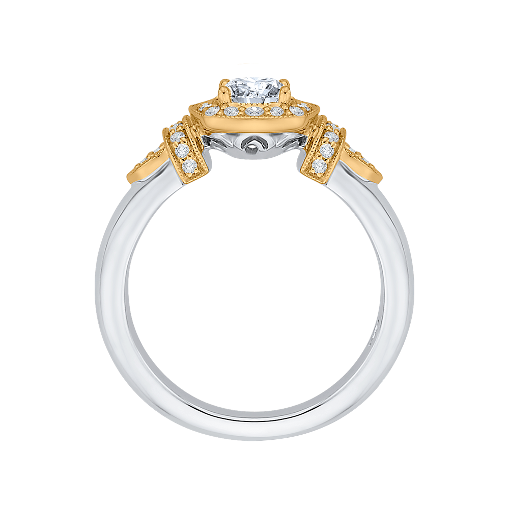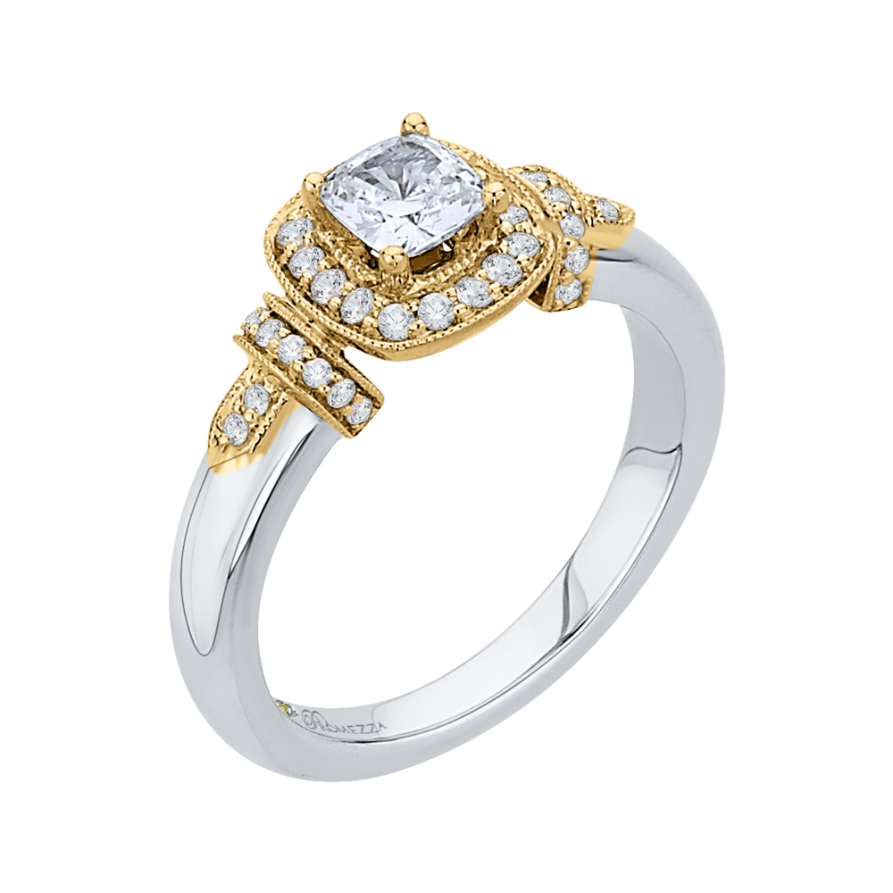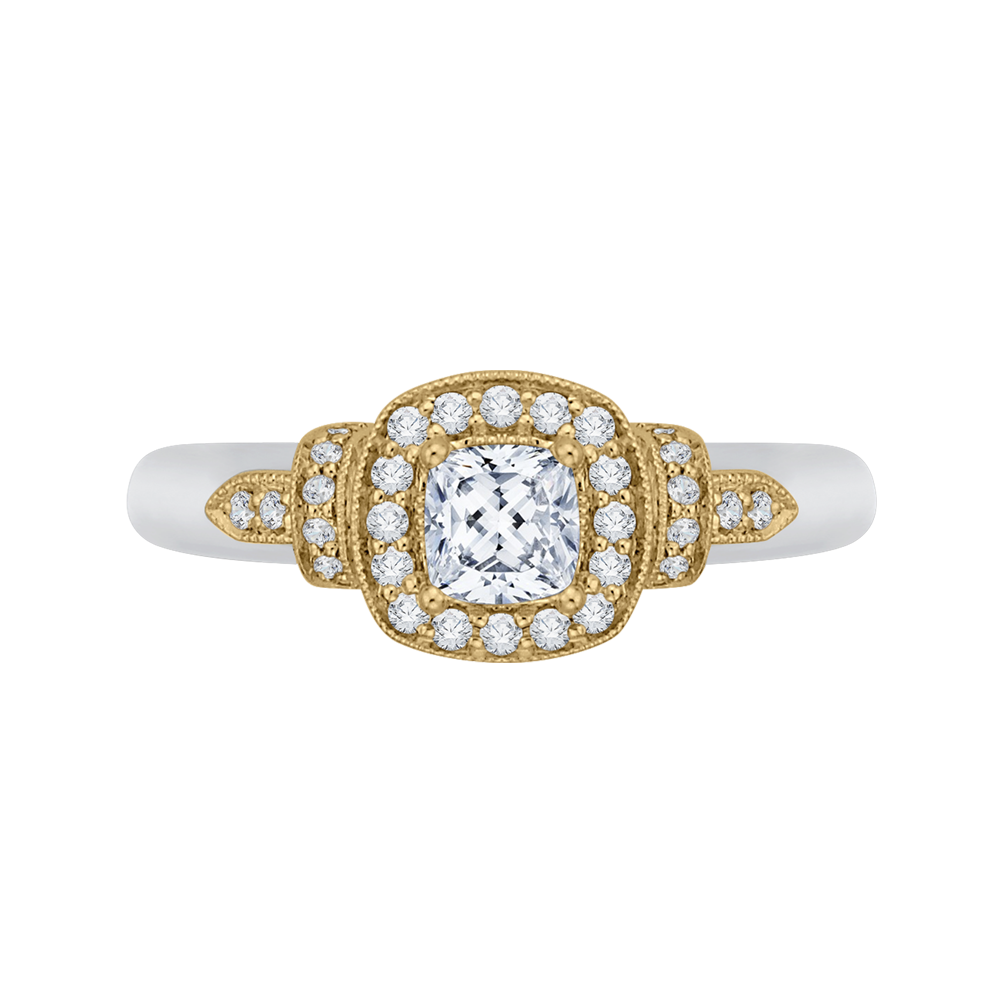 Cushion Cut Diamond Halo Engagement Ring in 14K Two Tone Gold