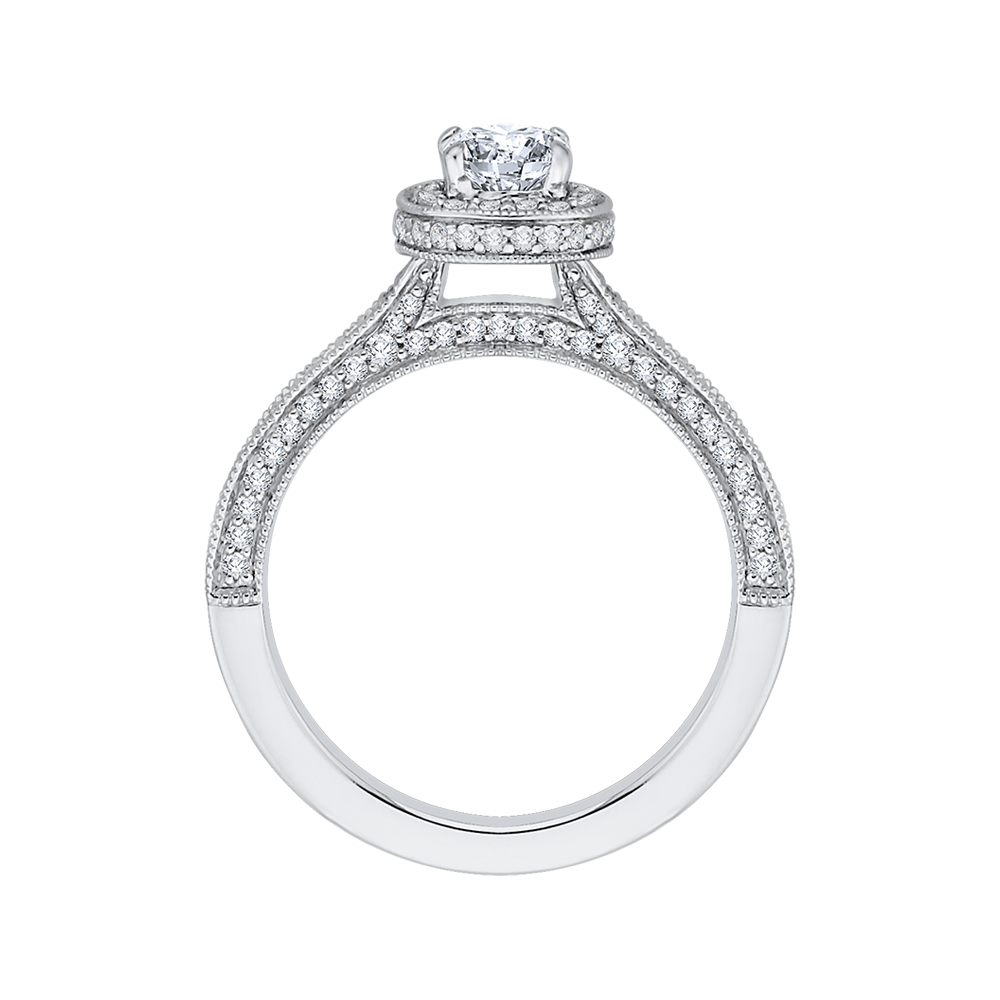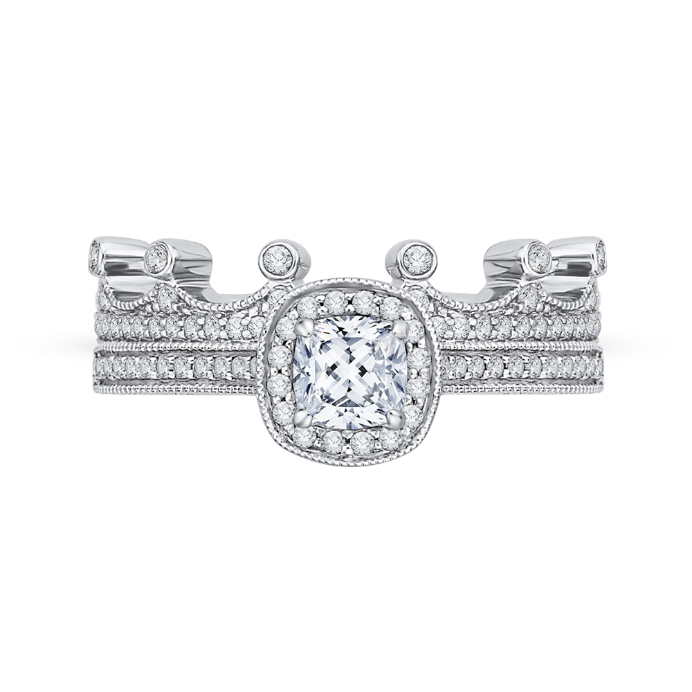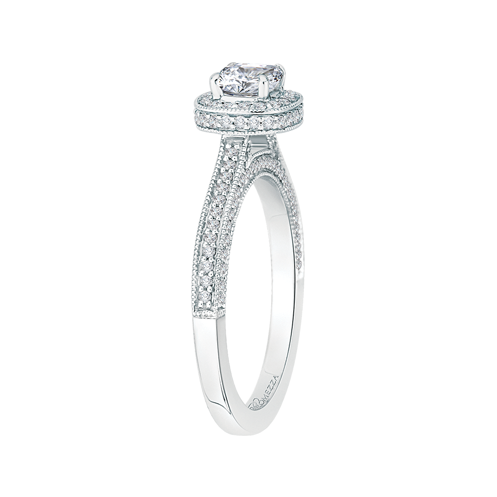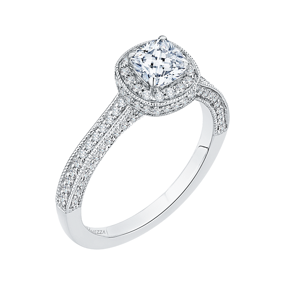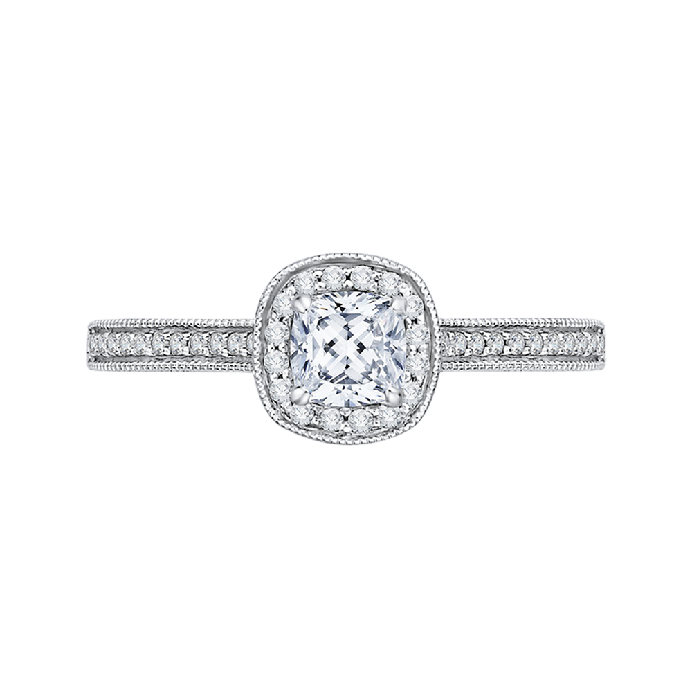 Cushion Cut Diamond Halo Engagement Ring in 14K White Gold