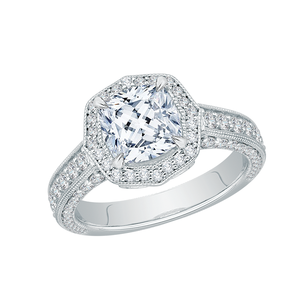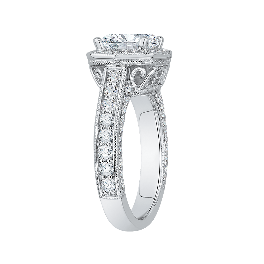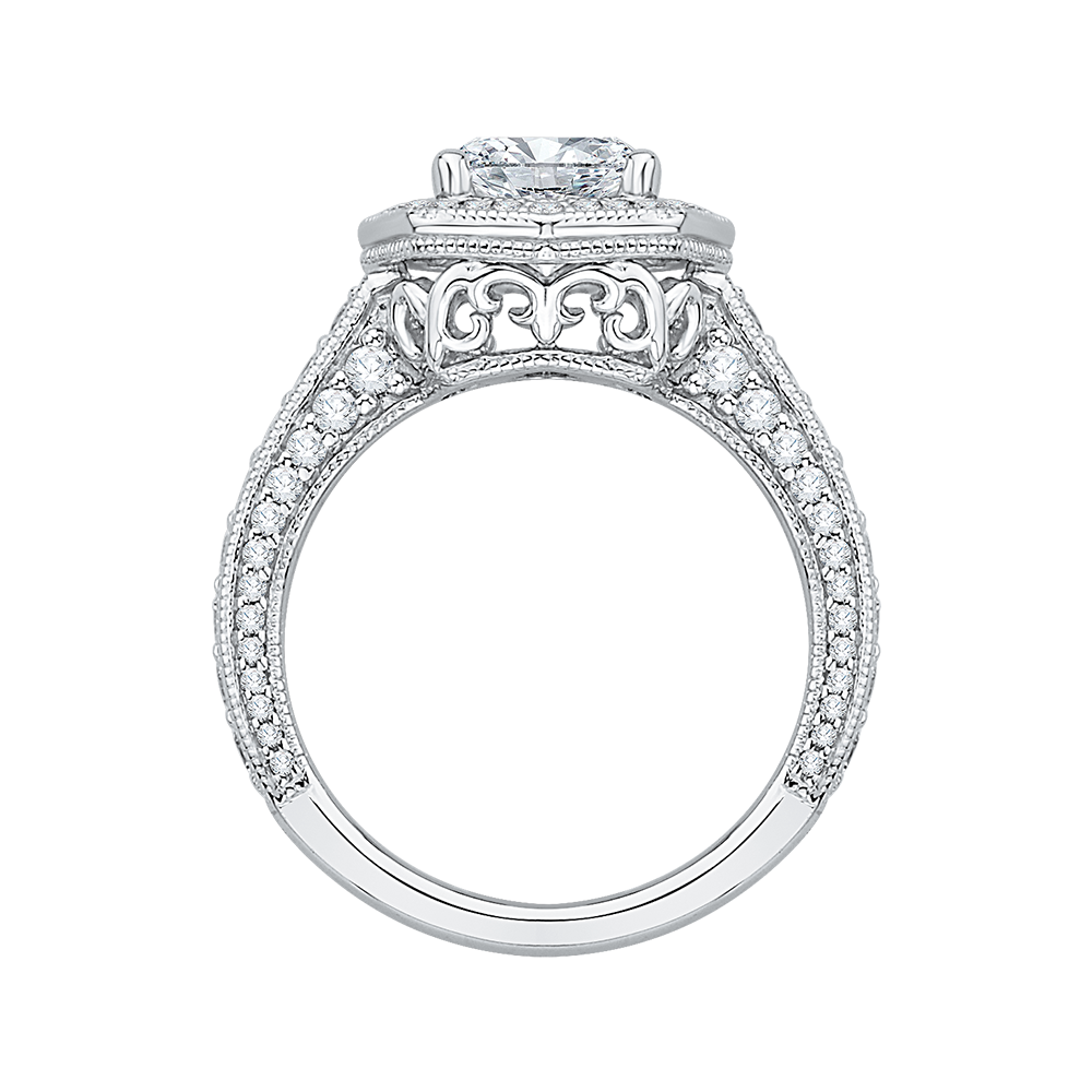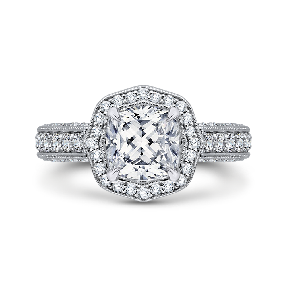Cushion Cut Diamond Halo Engagement Ring in 18K White Gold (Semi-Mount)