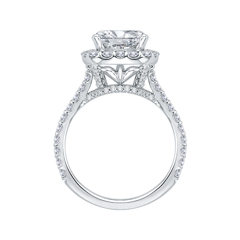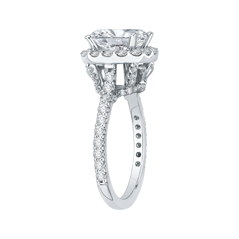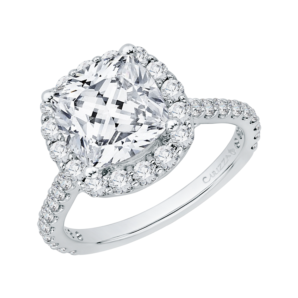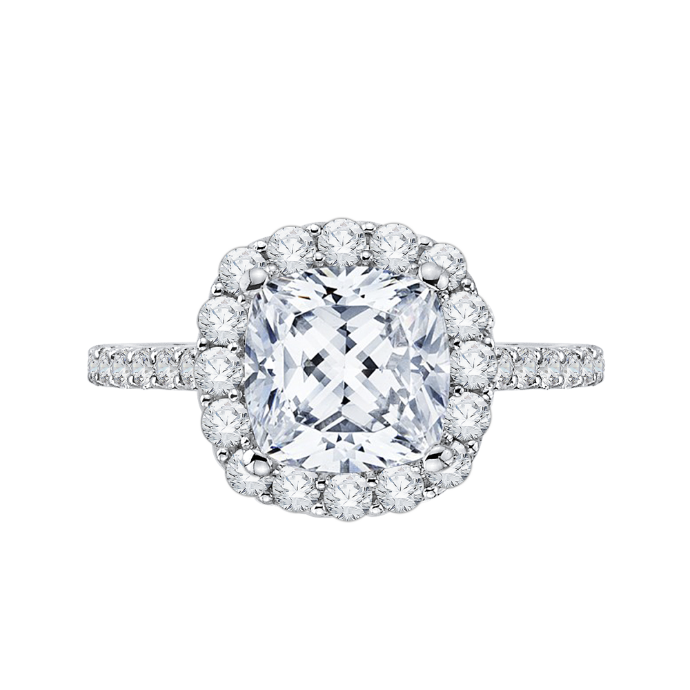 Cushion Cut Diamond Halo Engagement Ring in 18K White Gold (Semi-Mount)