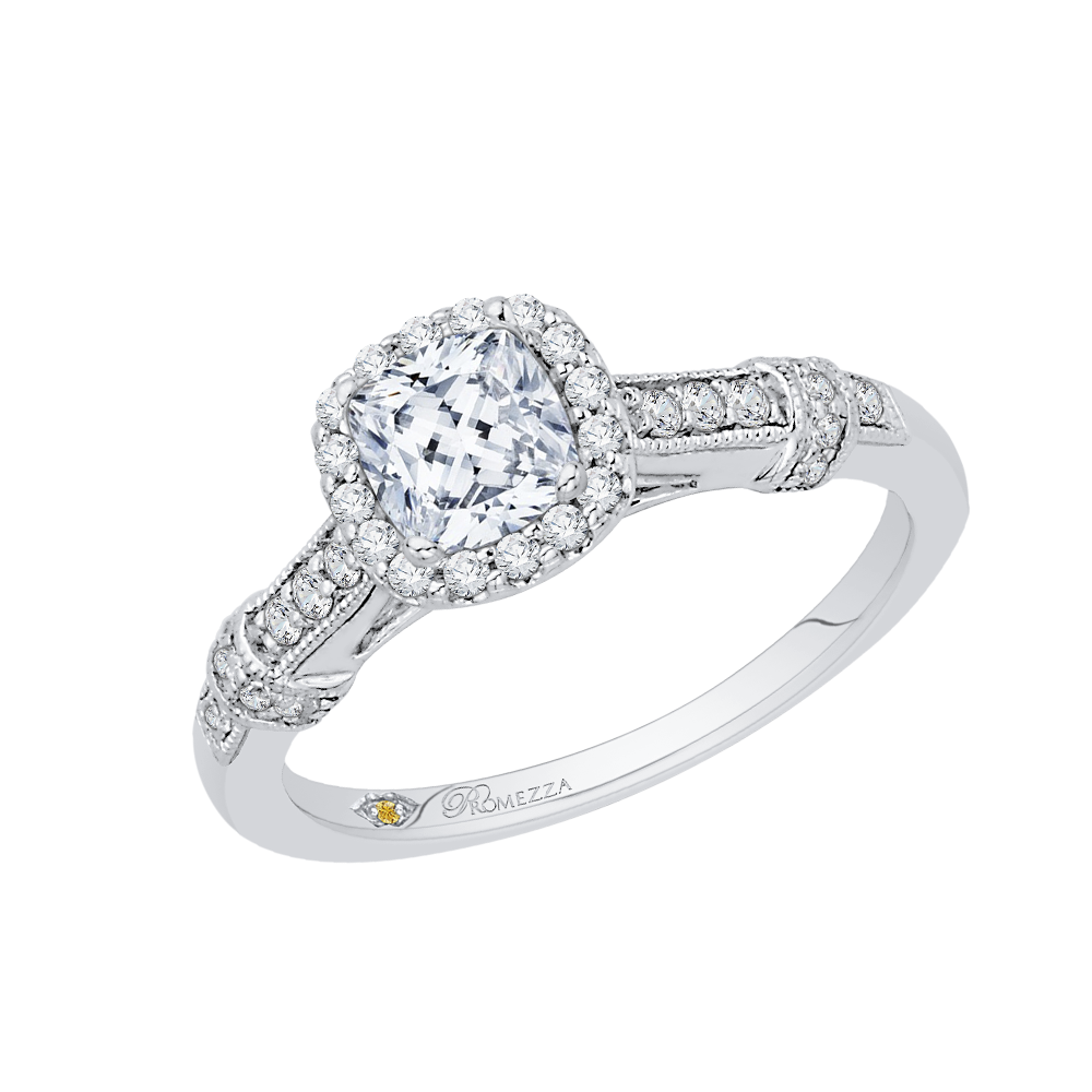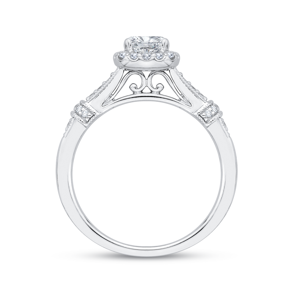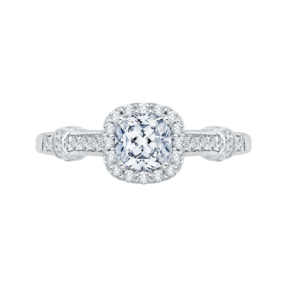 Cushion Cut Halo Diamond Engagement Ring in 14K White Gold