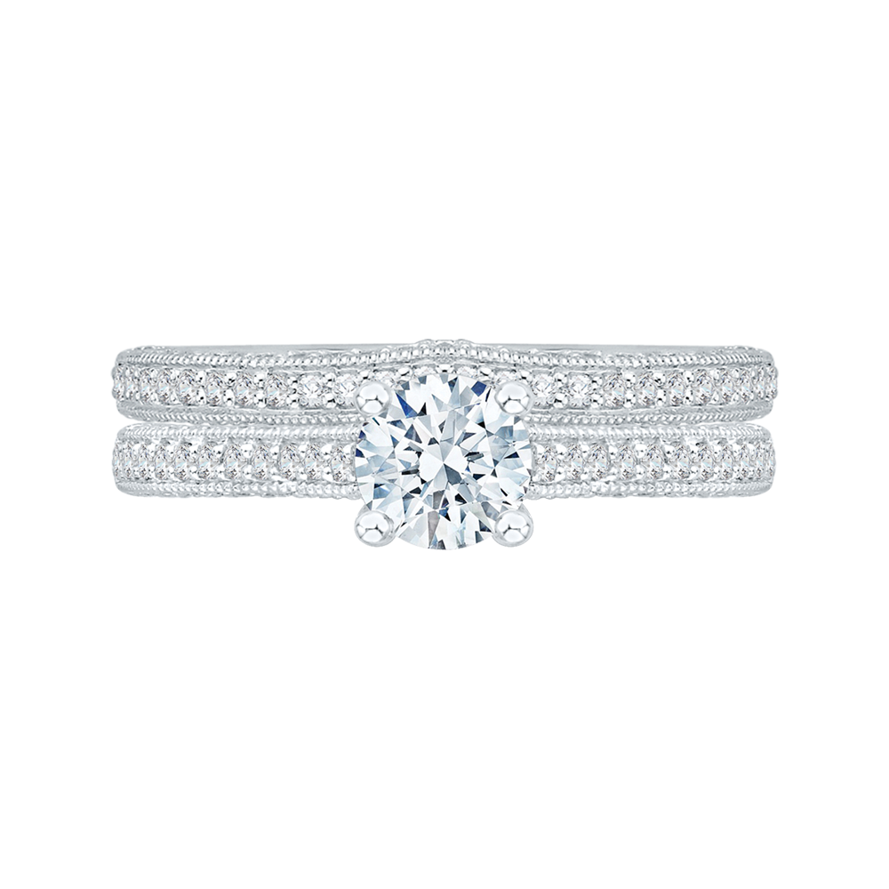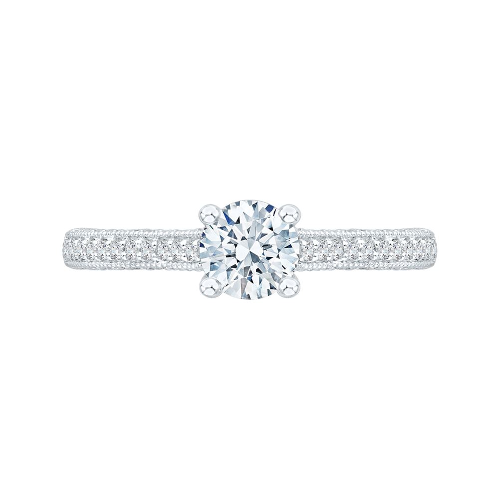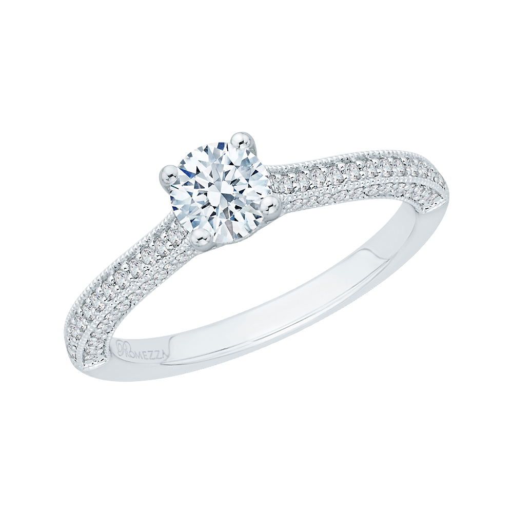 This exquisite diamond engagement ring features a stunning cathedral style setting in lustrous 14K white gold. The sparkling round cut diamond is elegantly showcased in a classic and timeless design. A symbol of everlasting love and commitment, this ring is the perfect choice for your special moment.
