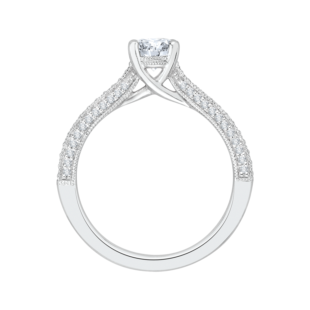 Diamond Cathedral Style Engagement Ring In 14K White Gold