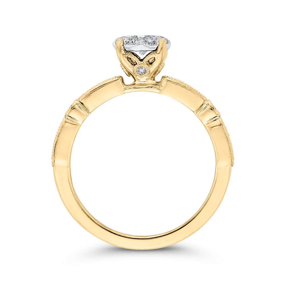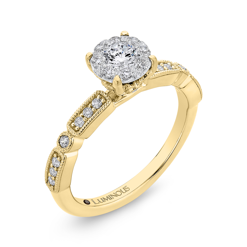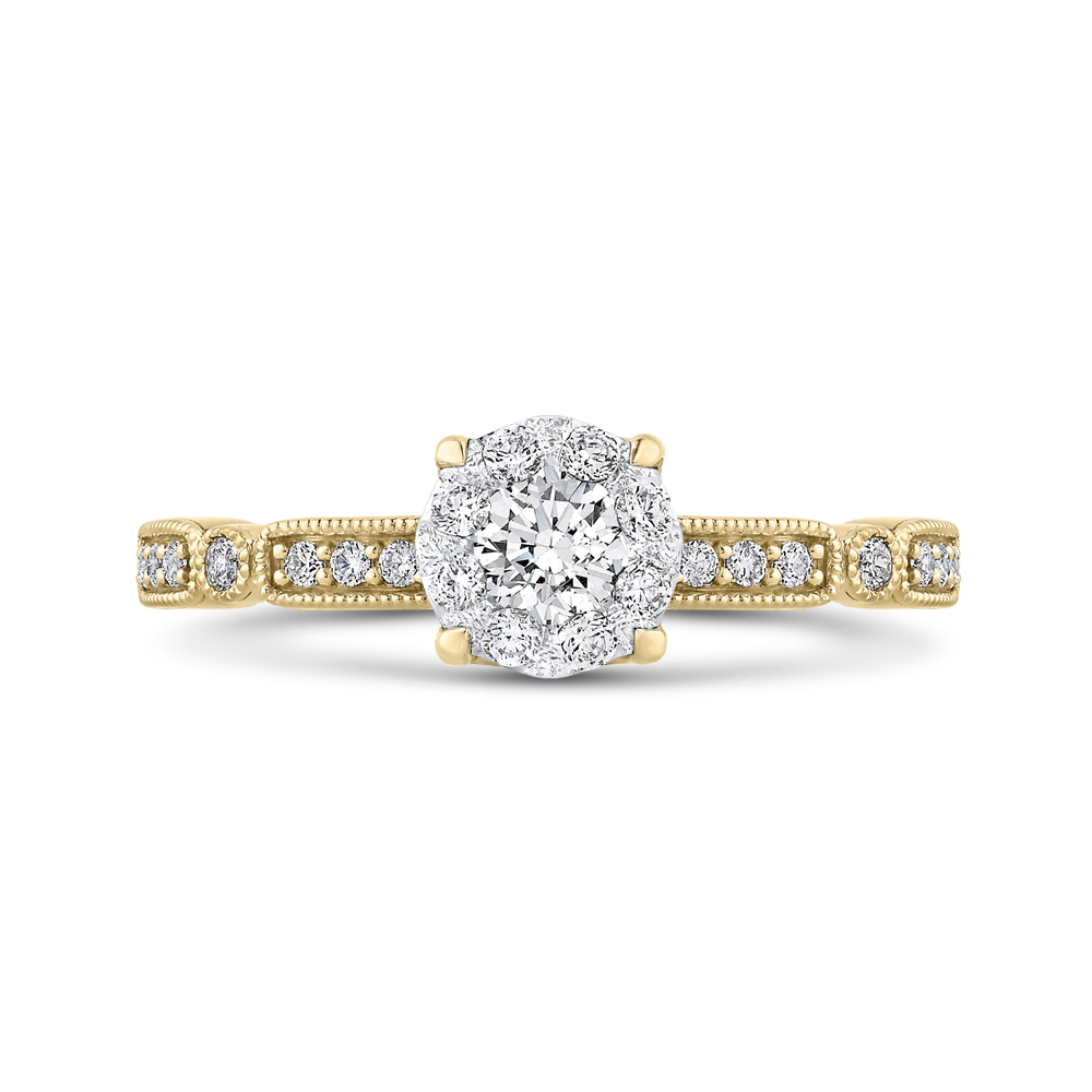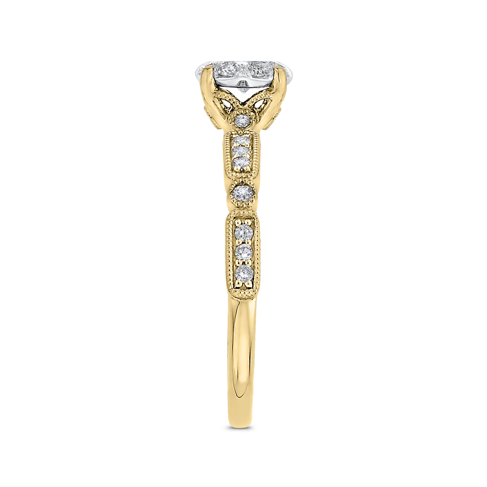 This exquisite diamond engagement ring is crafted in 14K two tone gold, combining the timeless elegance of yellow gold with the modern allure of white gold. The dazzling round-cut diamond centerpiece is sure to capture the heart of your beloved, symbolizing your eternal love and commitment. A truly luxurious and sophisticated choice for a proposal that will be cherished for a lifetime.