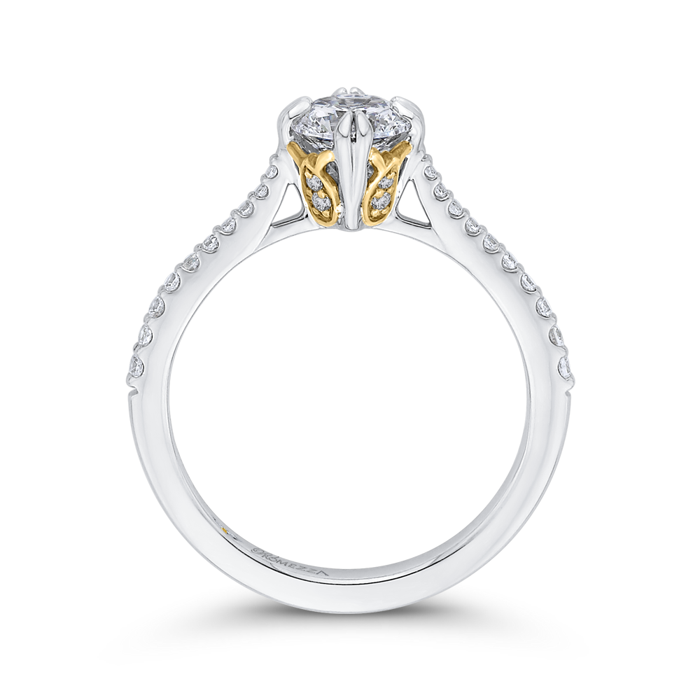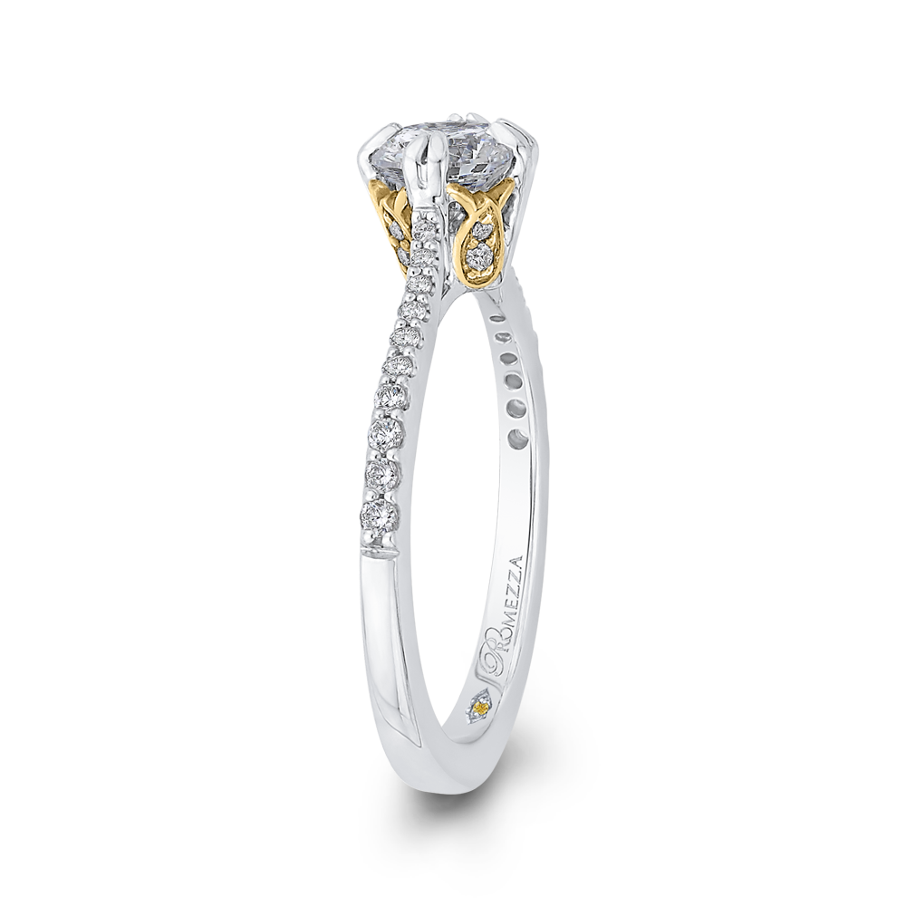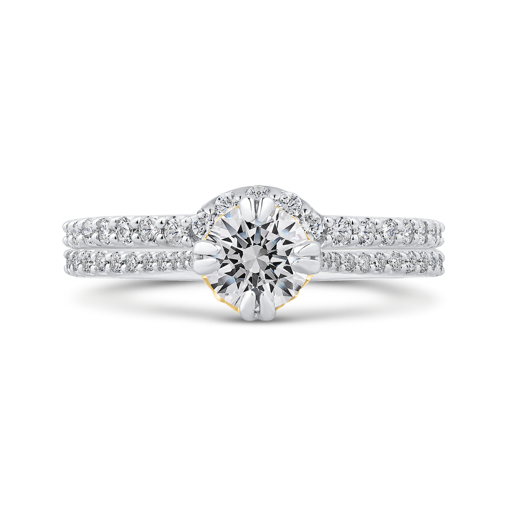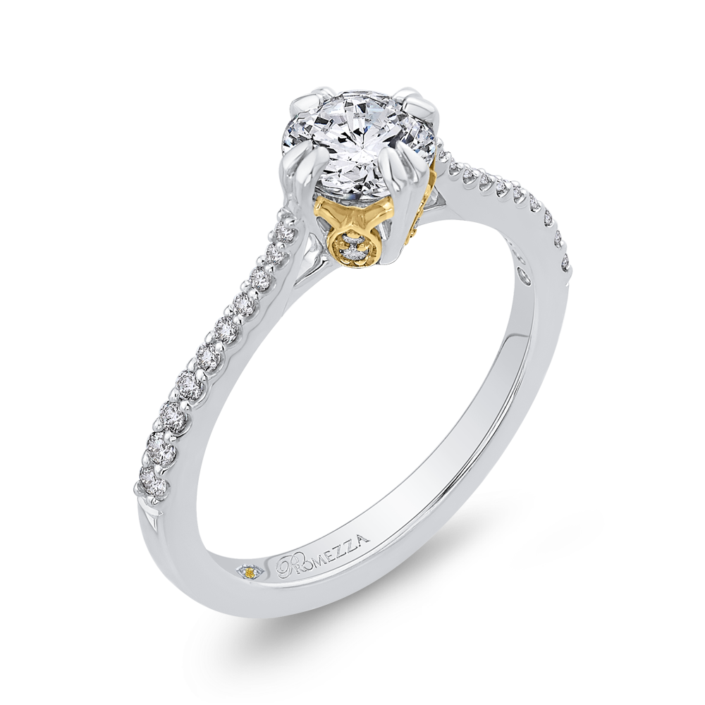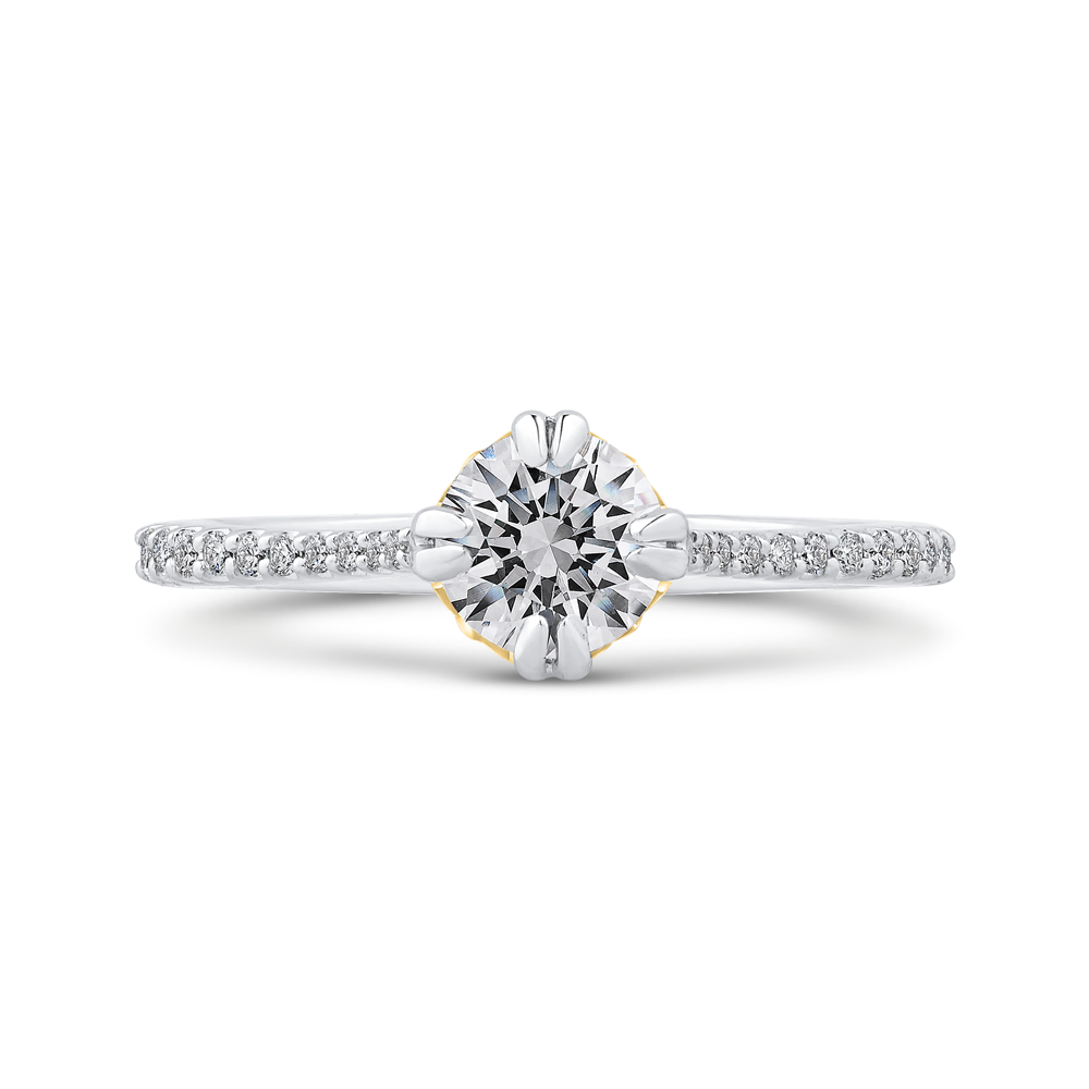 This exquisite diamond engagement ring is crafted in 14K two tone gold, combining the timeless elegance of yellow gold with the modern allure of white gold. The dazzling round-cut diamond centerpiece is sure to capture the heart of your beloved, symbolizing your eternal love and commitment. A truly luxurious and sophisticated choice for a proposal that will be cherished for a lifetime.