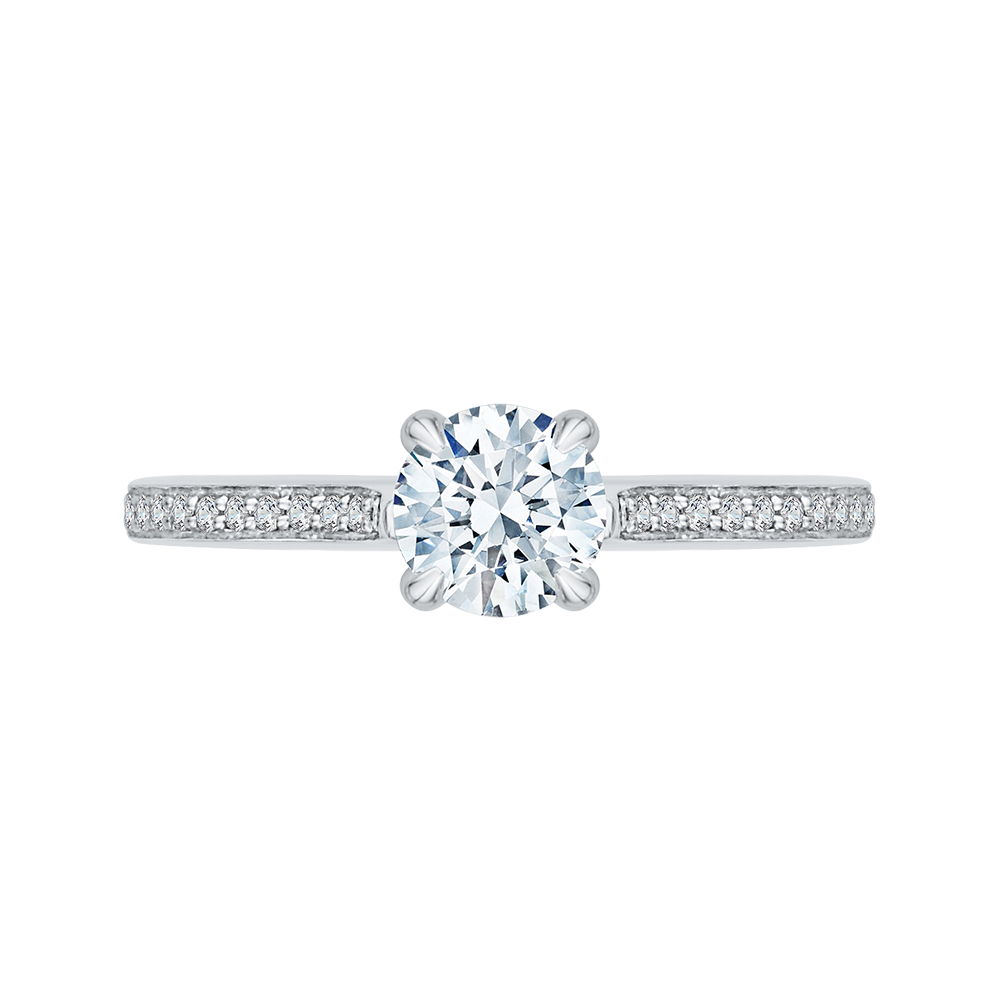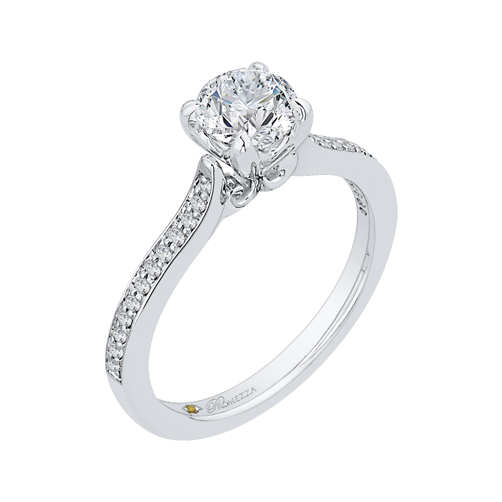 This exquisite diamond engagement ring in 14K white gold exudes timeless elegance and sophistication. The brilliant round-cut diamond sparkles with unparalleled beauty, symbolizing everlasting love and commitment. A stunning choice for the one you hold dear, this ring is sure to capture her heart and leave a lasting impression.