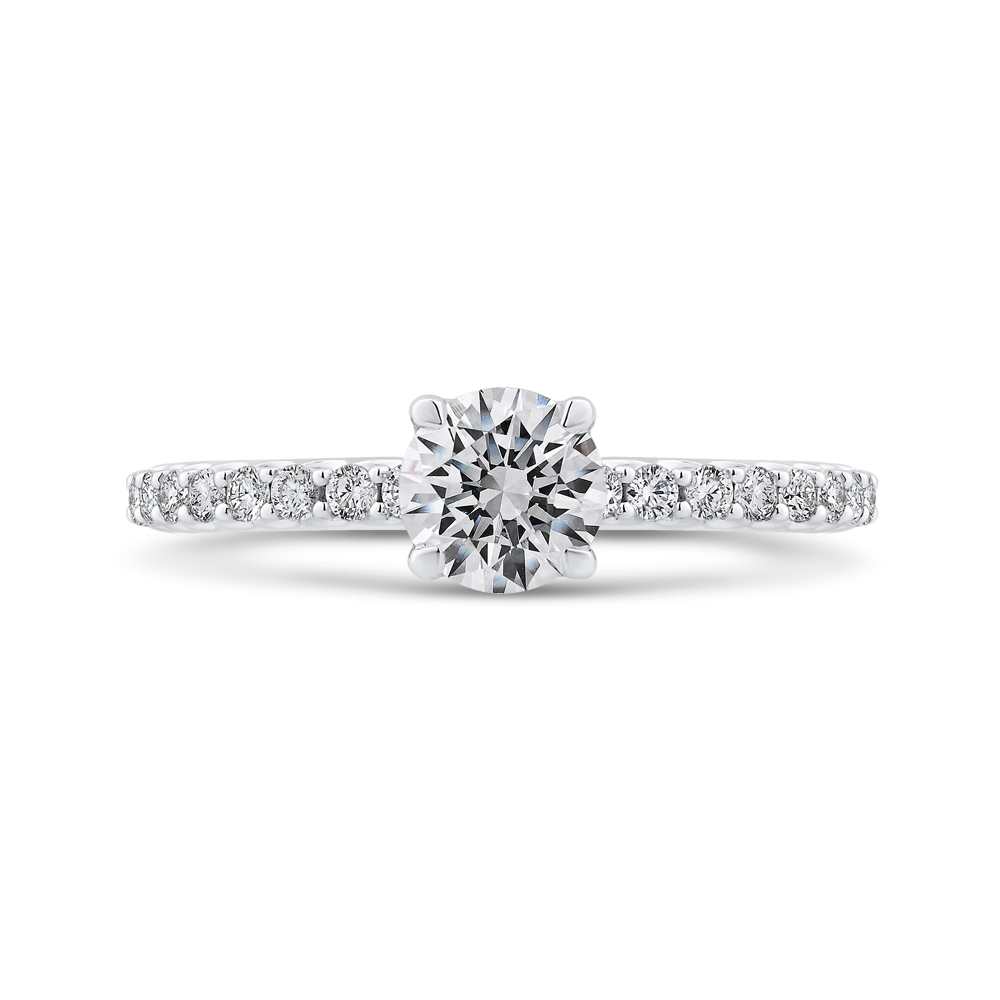 This exquisite diamond engagement ring in 14K white gold exudes timeless elegance and sophistication. The brilliant round-cut diamond sparkles with unparalleled beauty, symbolizing everlasting love and commitment. A stunning choice for the one you hold dear, this ring is sure to capture her heart and leave a lasting impression.