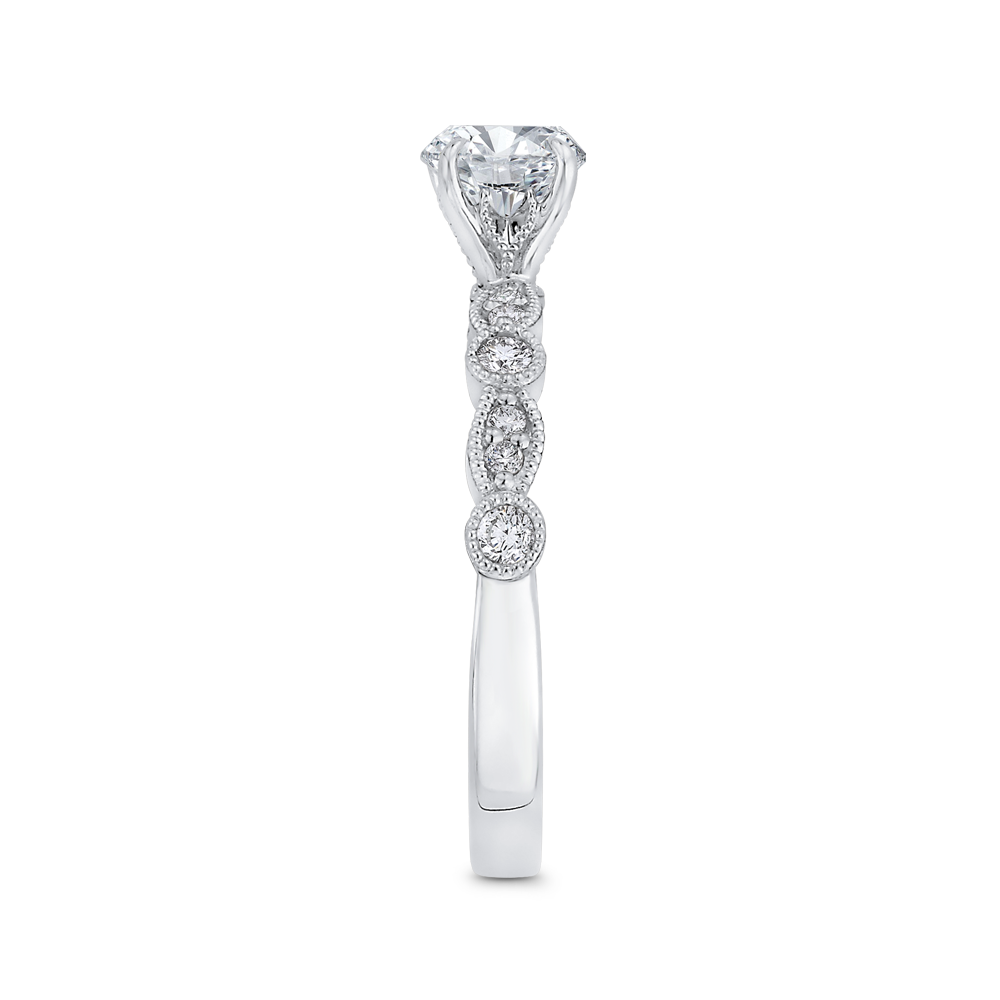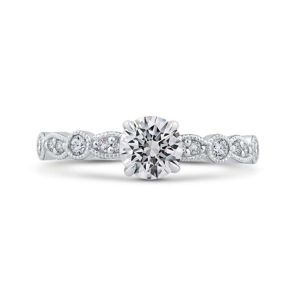 This exquisite diamond engagement ring in 14K white gold exudes timeless elegance and sophistication. The brilliant round-cut diamond sparkles with unparalleled beauty, symbolizing everlasting love and commitment. A stunning choice for the one you hold dear, this ring is sure to capture her heart and leave a lasting impression.
