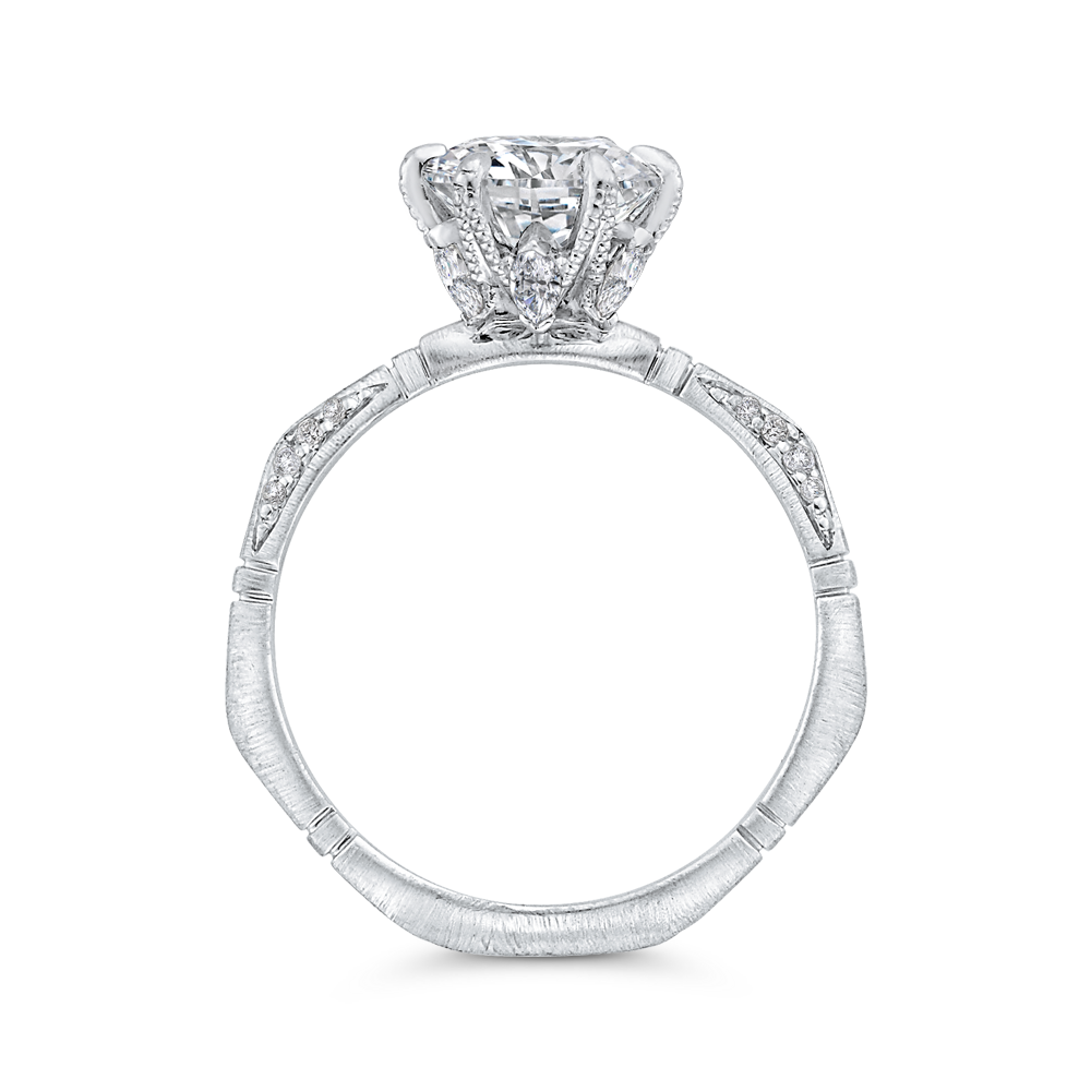 This exquisite diamond engagement ring in 14K white gold features a stunning semi-mount setting, allowing you to choose the perfect center stone to complete the look. The timeless design and high-quality craftsmanship make this ring a symbol of everlasting love and commitment. Elevate your proposal with this elegant and classic piece that will be cherished for a lifetime.
