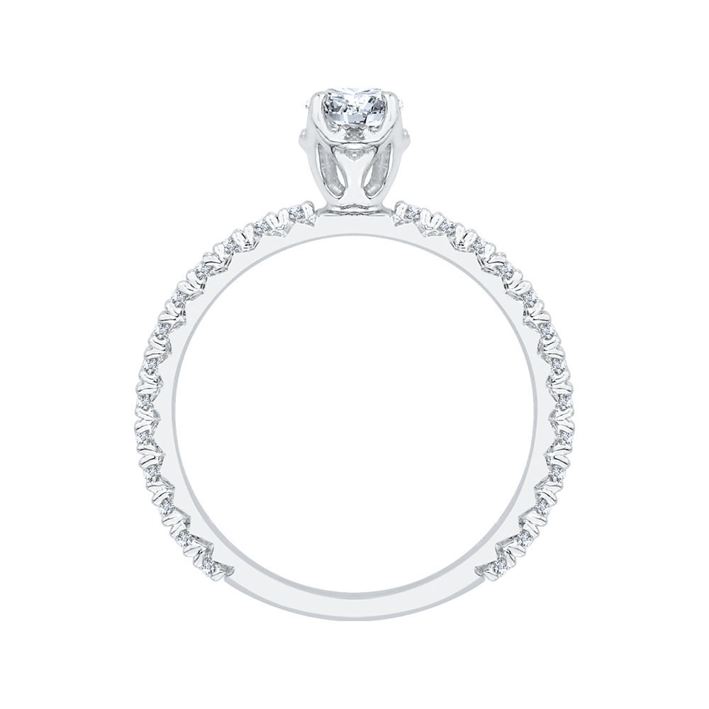This exquisite diamond floral engagement ring in 14K white gold exudes timeless elegance and sophistication. The intricate floral design is adorned with sparkling diamonds, creating a stunning and romantic piece that will captivate any bride-to-be. Crafted with the finest materials, this ring is a symbol of everlasting love and commitment.