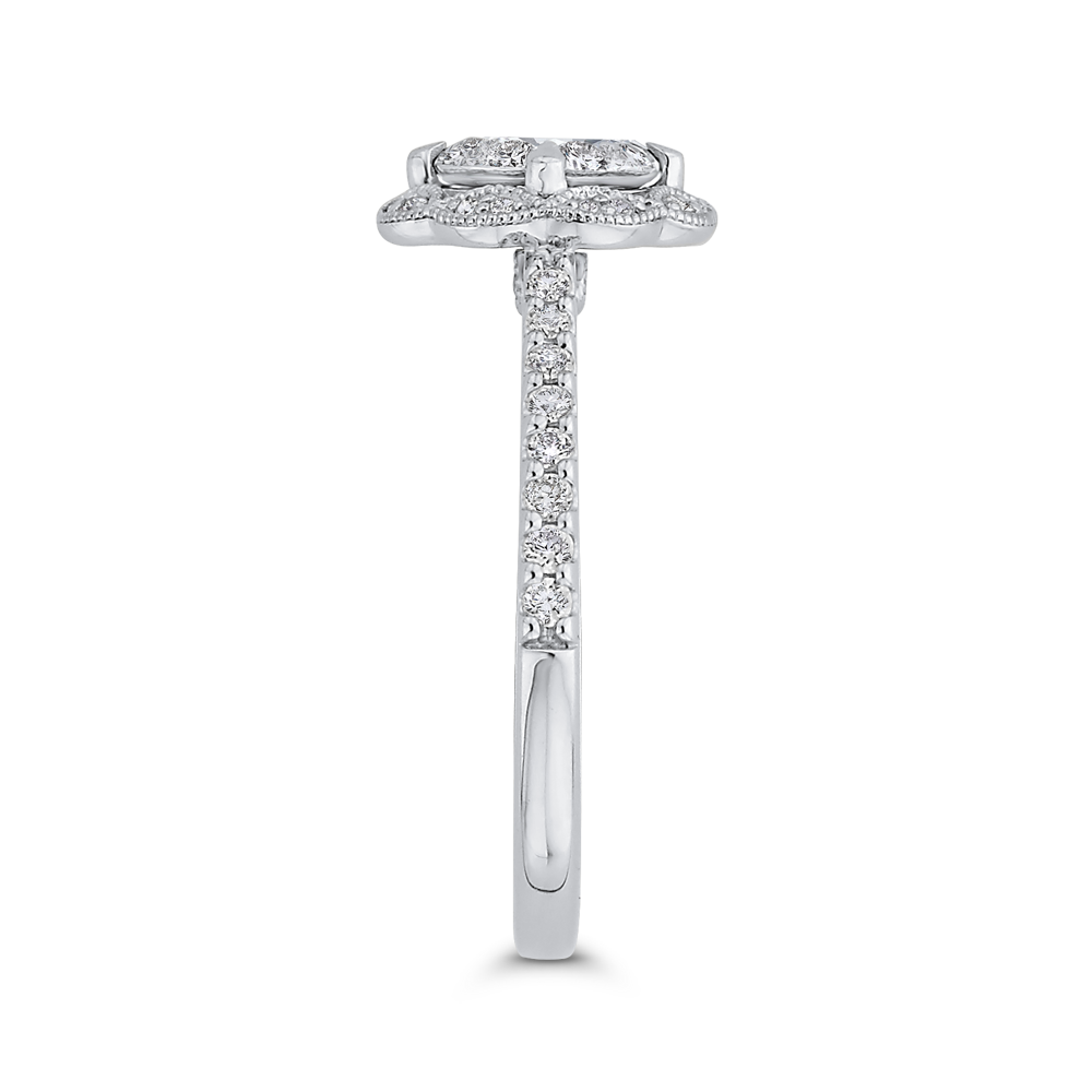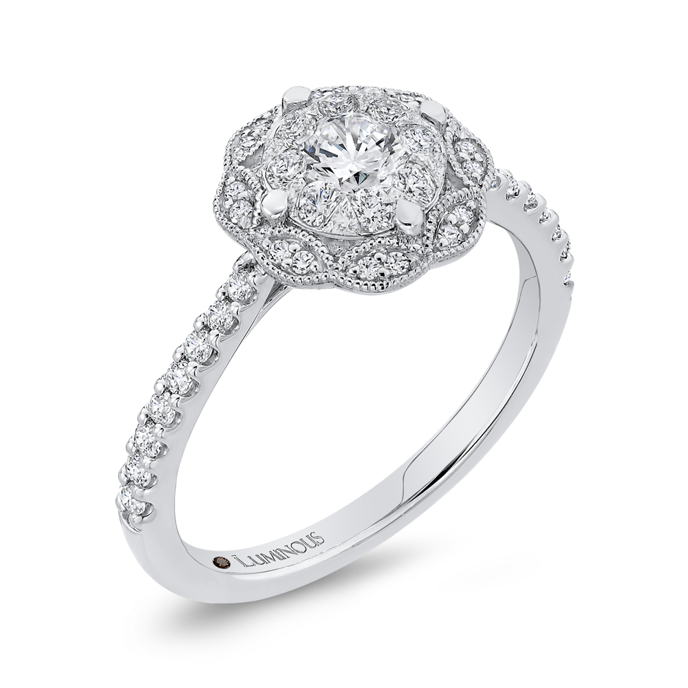 This exquisite Diamond Flower Engagement Ring in 14K White Gold is a timeless symbol of love and commitment. The delicate flower design is adorned with sparkling diamonds, creating a stunning and elegant piece that will be cherished for a lifetime. Crafted with precision and care, this ring is the perfect choice for a romantic proposal or a special anniversary gift.