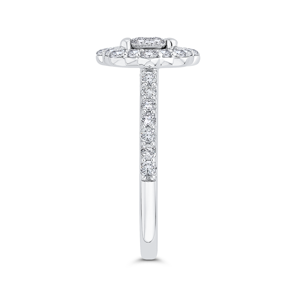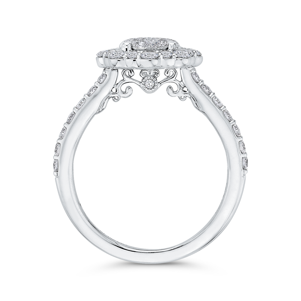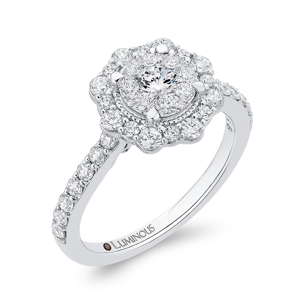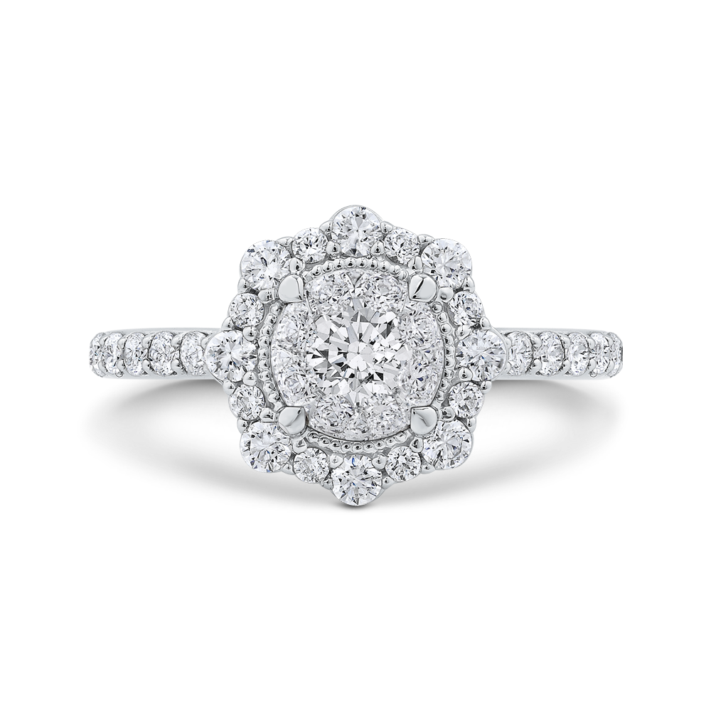 Diamond Flower Halo Engagement Ring in 14K White Gold