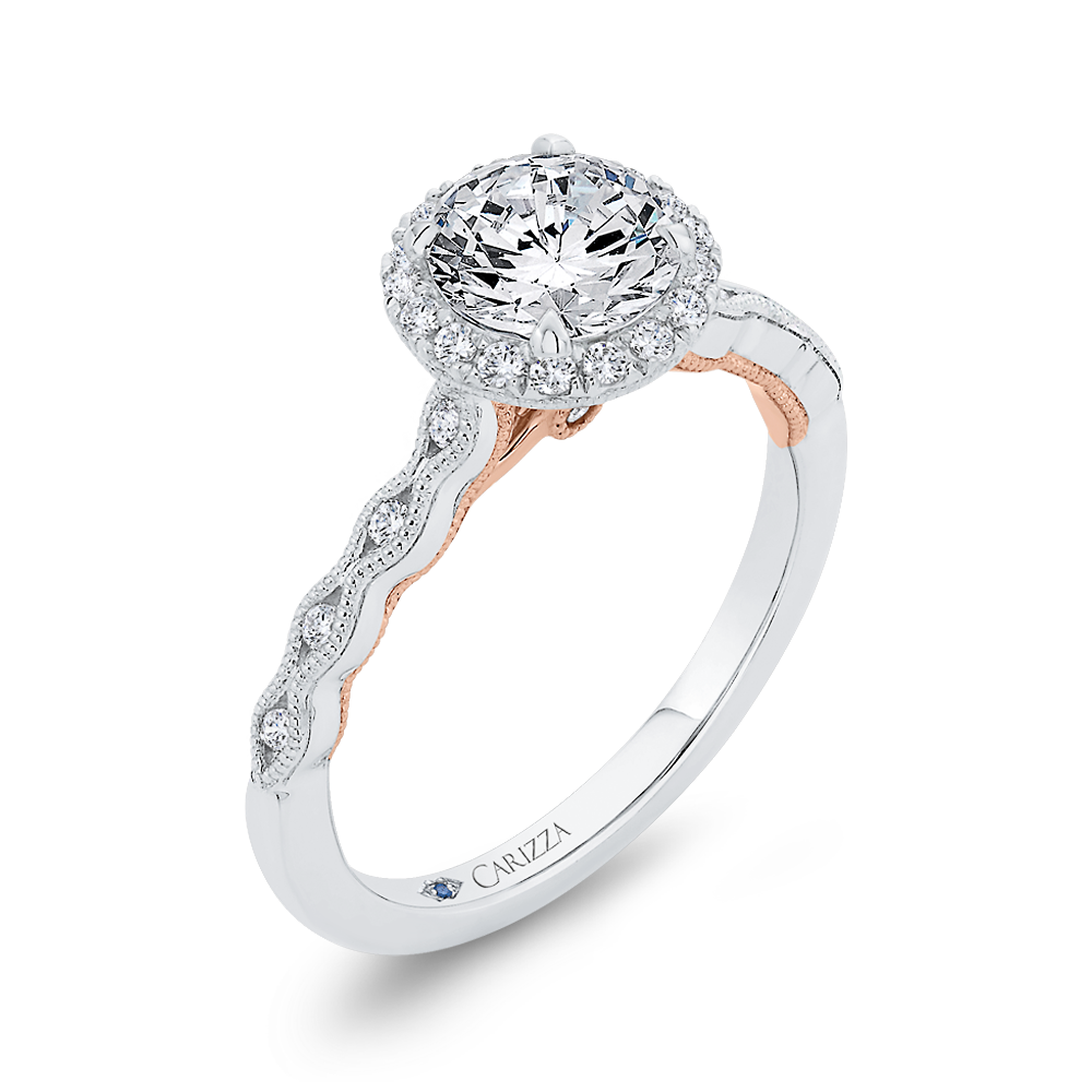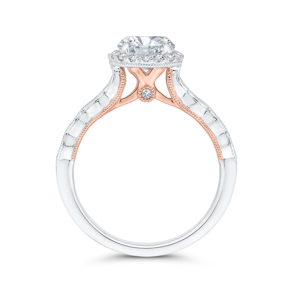 Diamond Halo Engagement Ring in 14K Two Tone Gold (Semi-Mount)