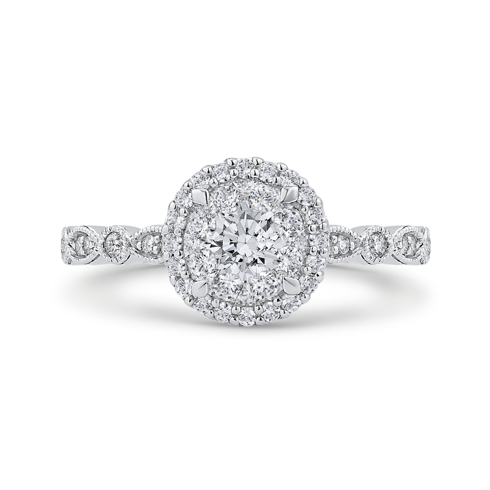 This exquisite Diamond Halo Engagement Ring in 14K White Gold exudes timeless elegance and sophistication. The dazzling halo of diamonds surrounding the center stone adds a touch of glamour and luxury to this classic design. Crafted with precision and attention to detail, this ring is the perfect symbol of everlasting love and commitment.