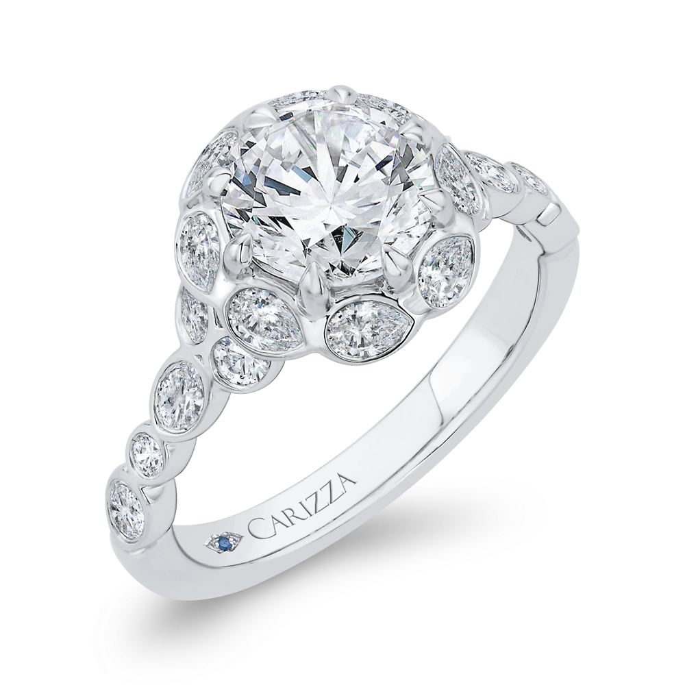 Diamond Halo Engagement Ring in 14K White Gold (Semi-Mount)