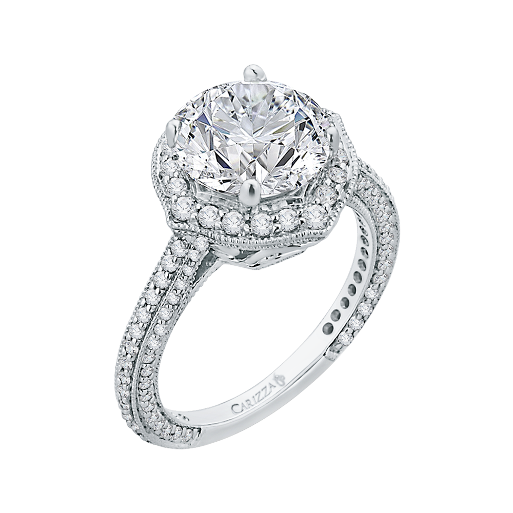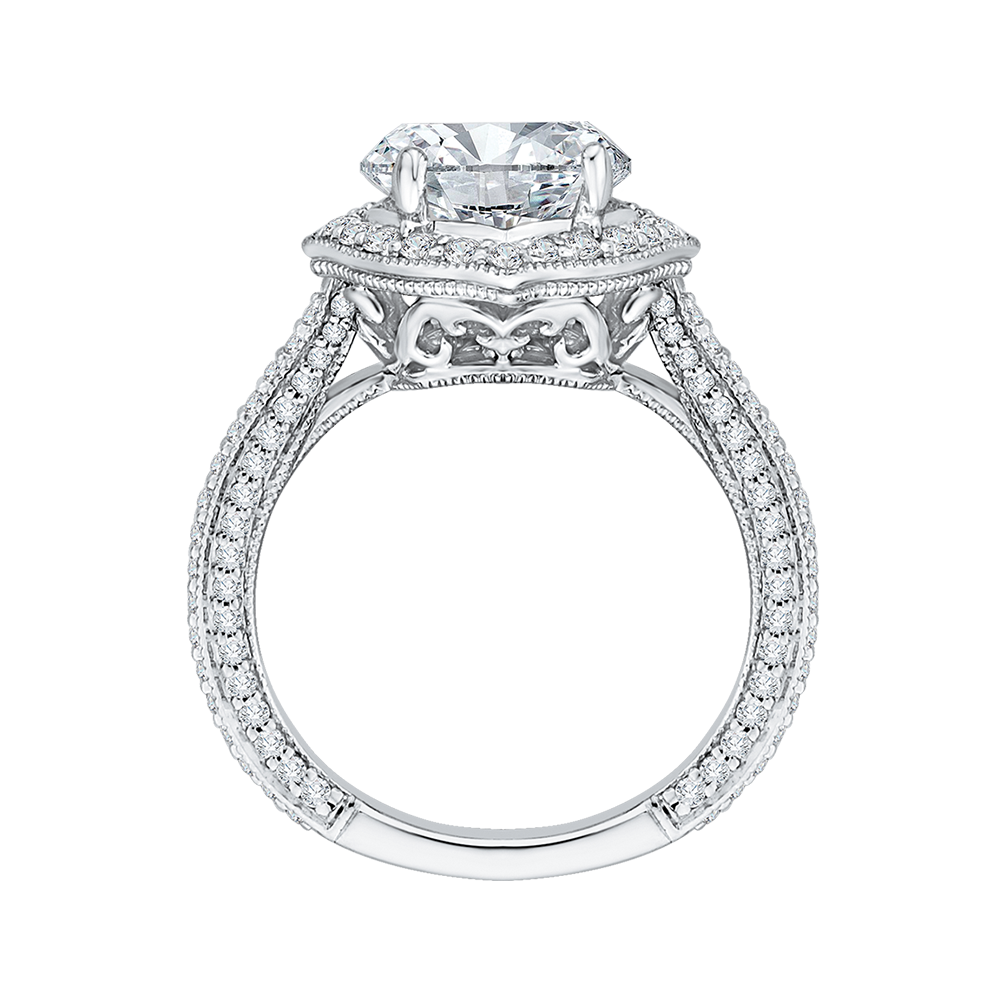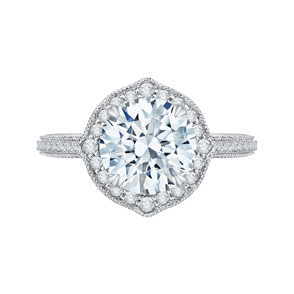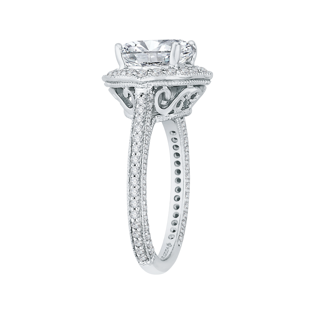 Diamond Halo Engagement Ring with in 18K White Gold (Semi-Mount)