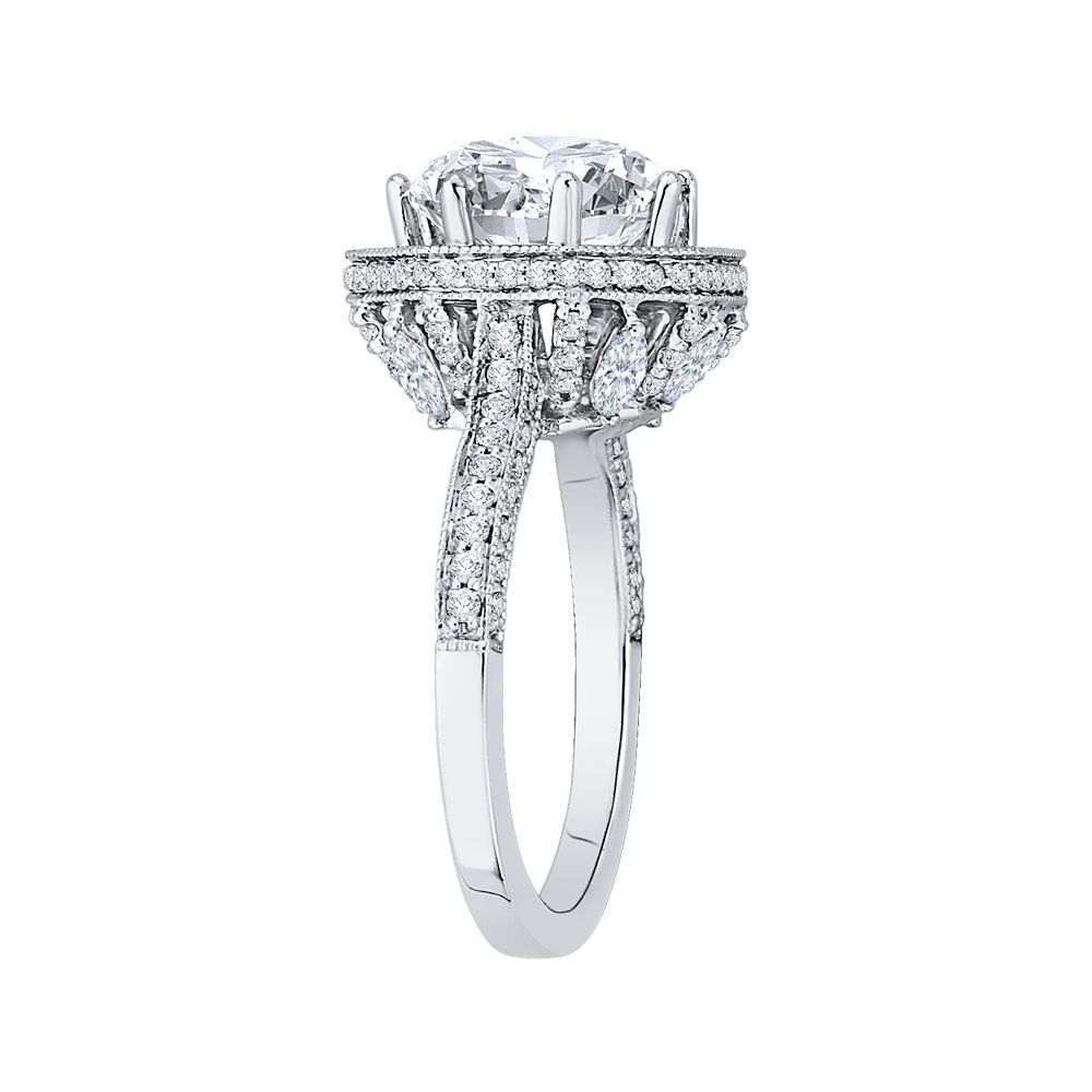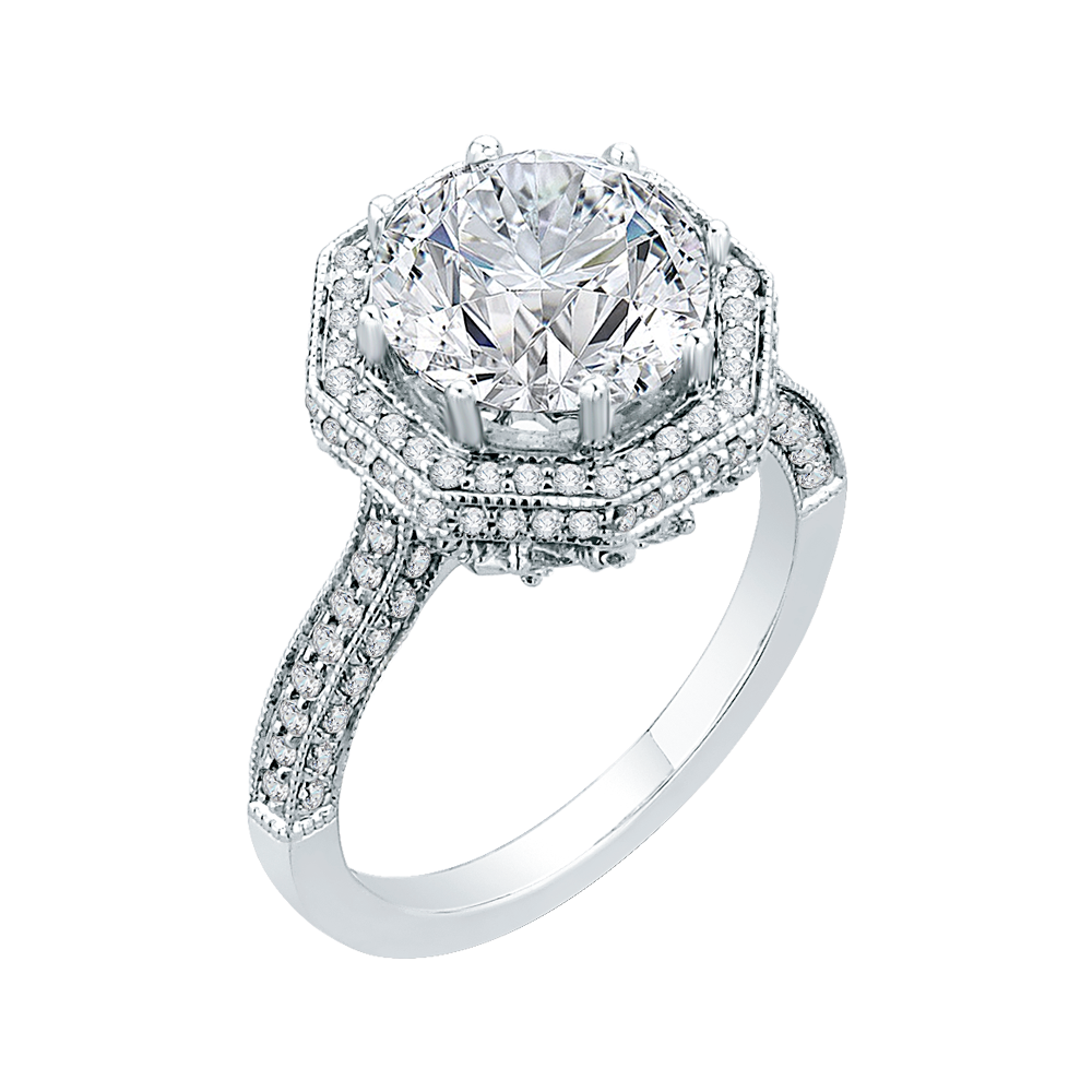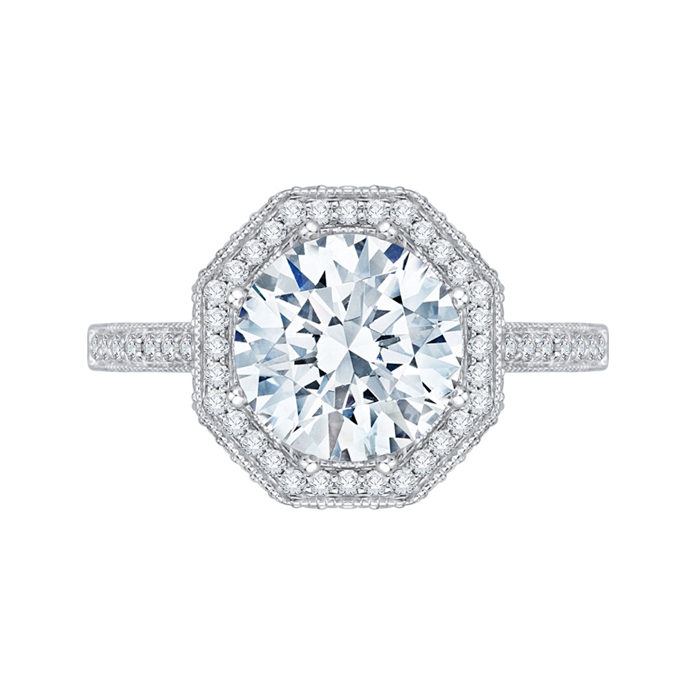 Diamond Octagon Shape Halo Engagement Ring in 18K White Gold (Semi-Mount)