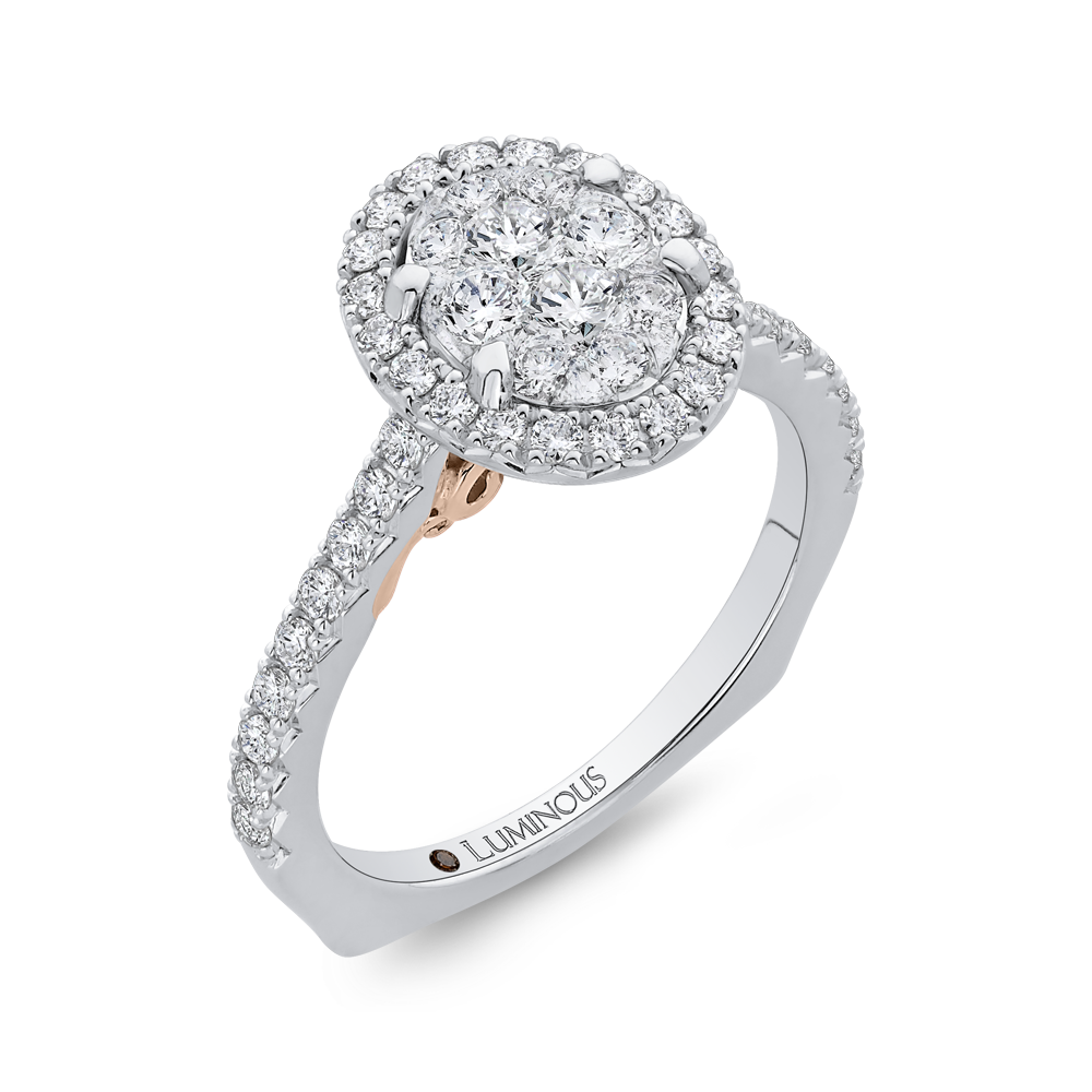 Diamond Oval Shape Halo Engagement Ring in 14K Two Tone Gold