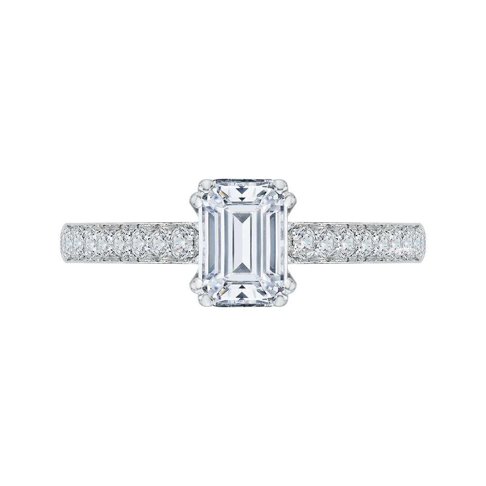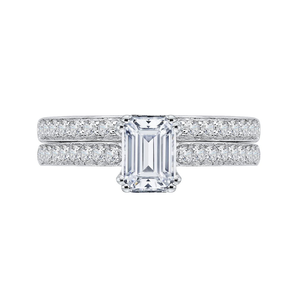 Emerald Cut Diamond Cathedral Style Engagement Ring in 14K White Gold