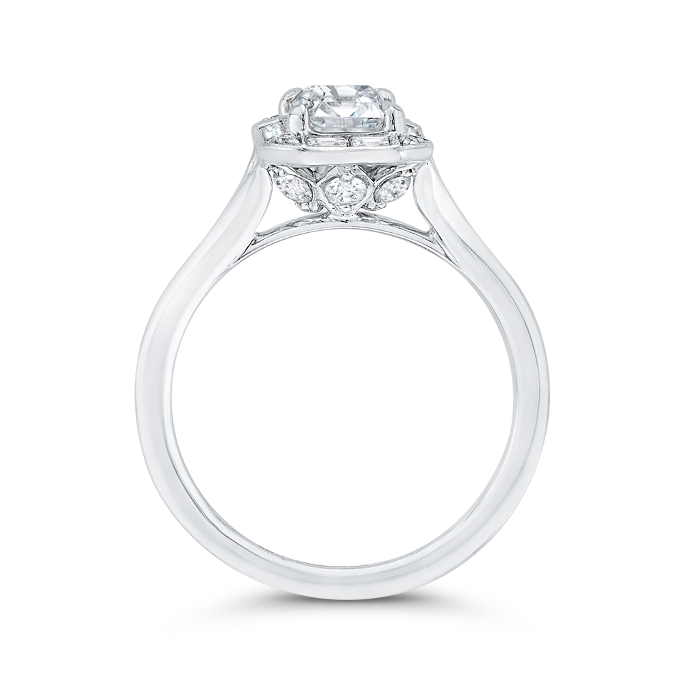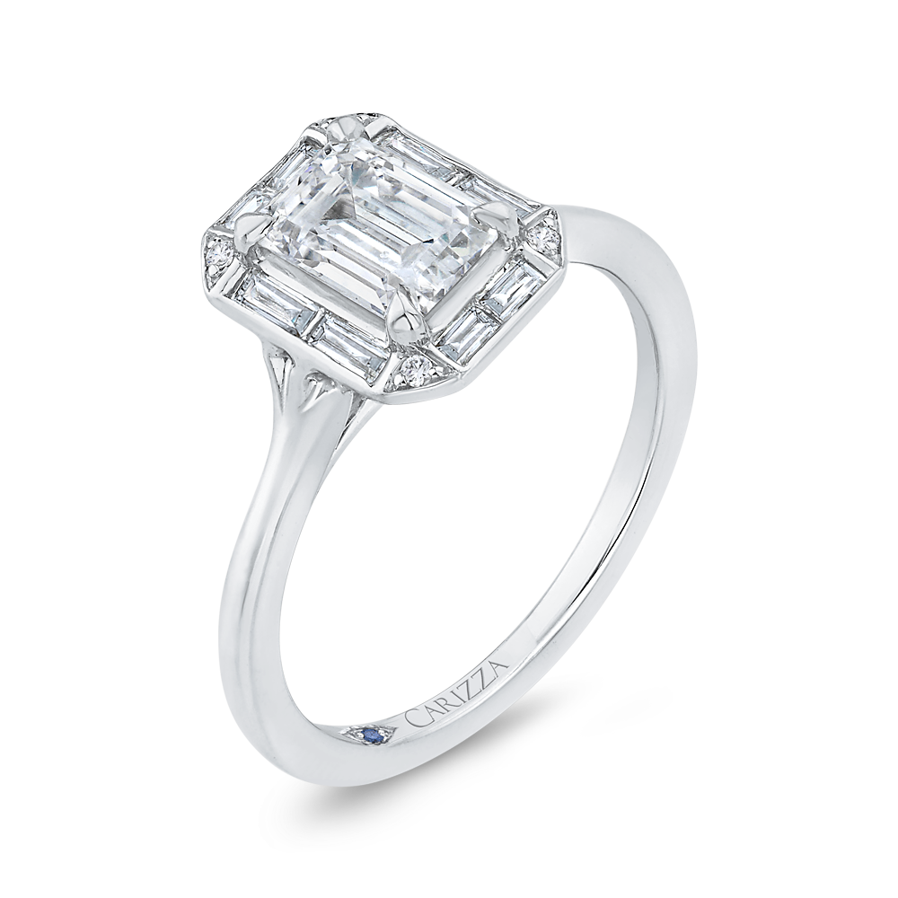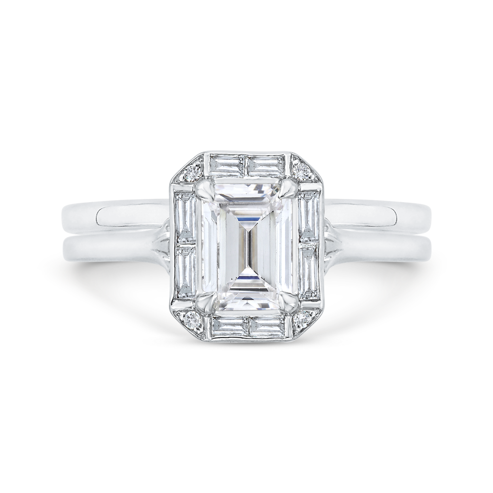 Emerald Cut Diamond Engagement Ring with Round Shank in 14K White Gold (Semi-Mount)