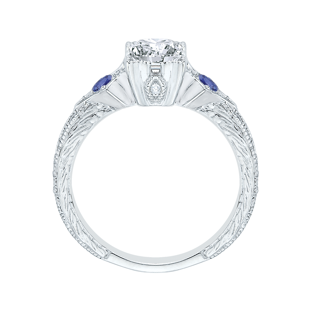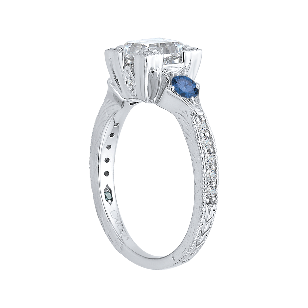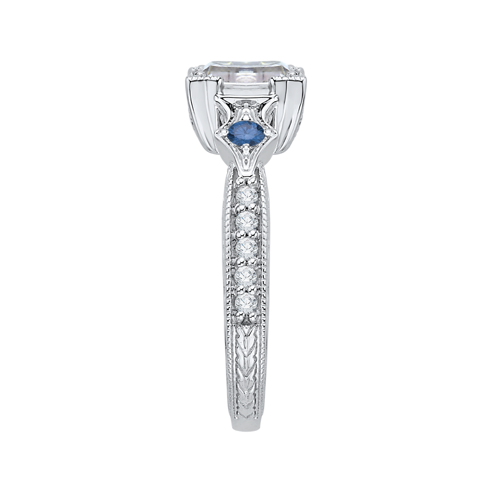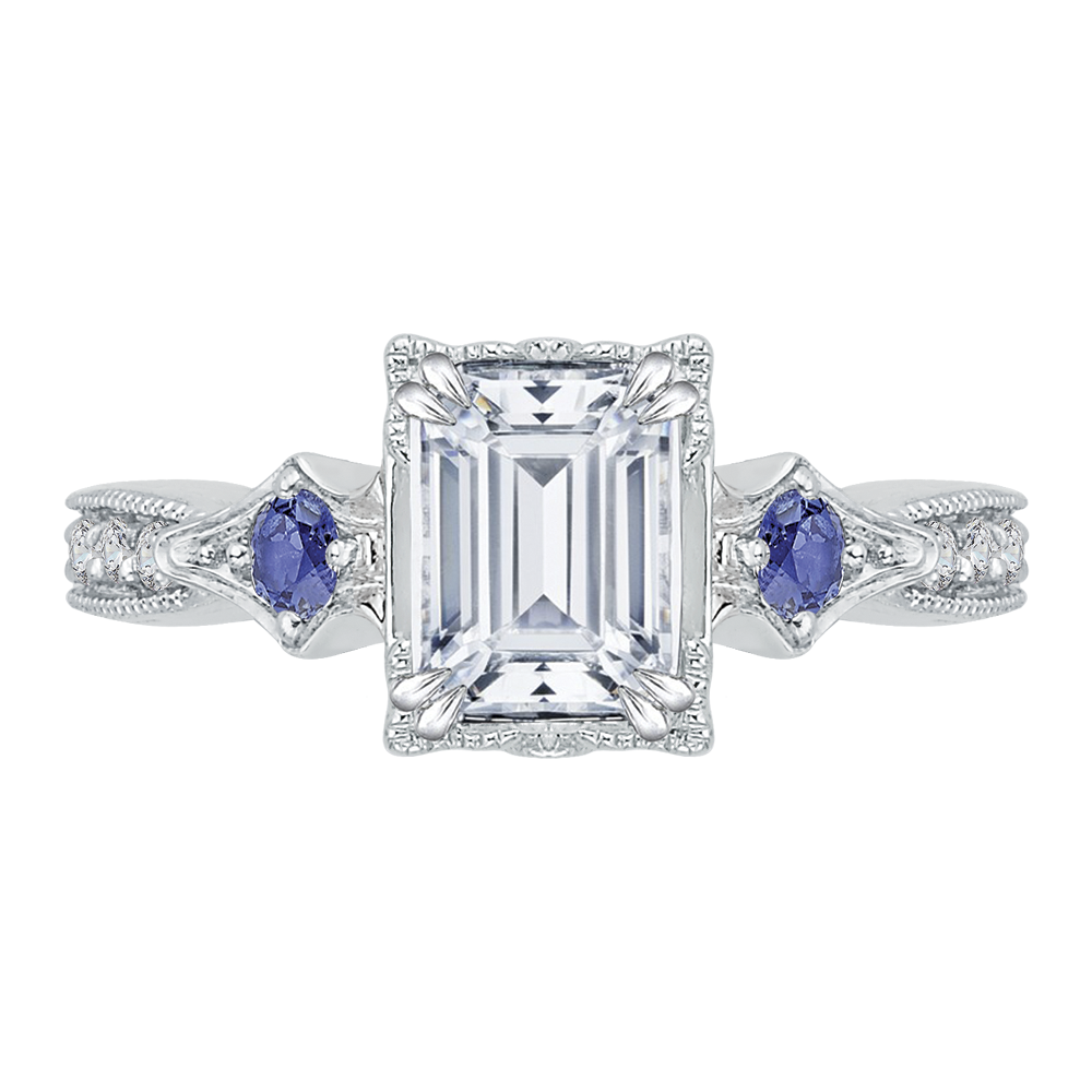 Emerald Cut Diamond Engagement Ring with Sapphire in 14K White Gold (Semi-Mount)