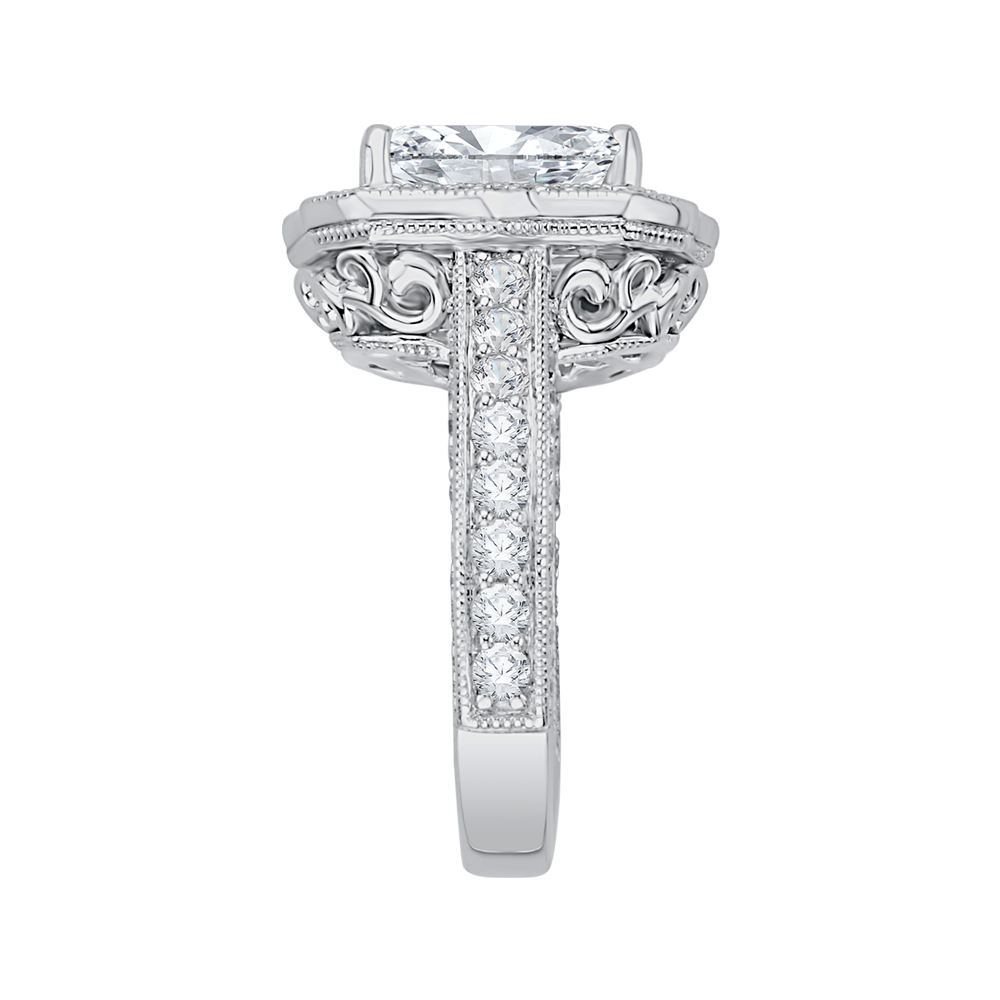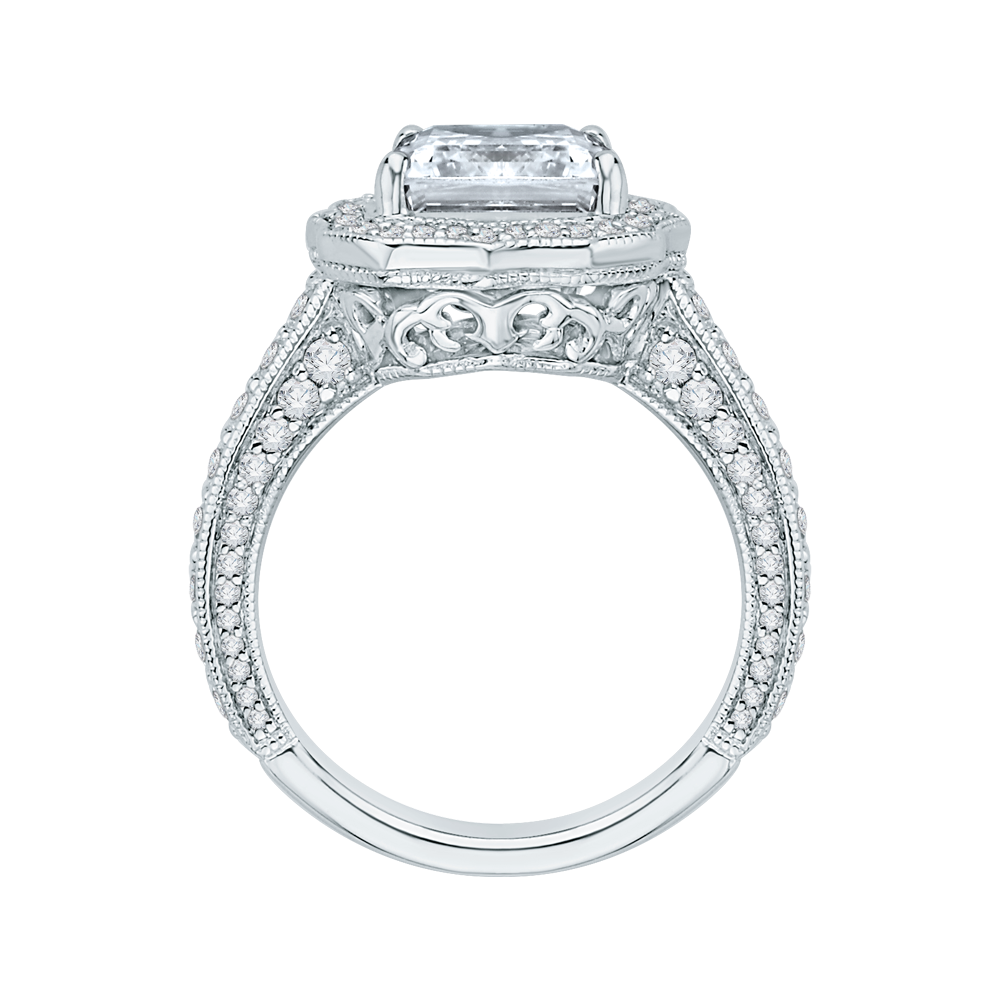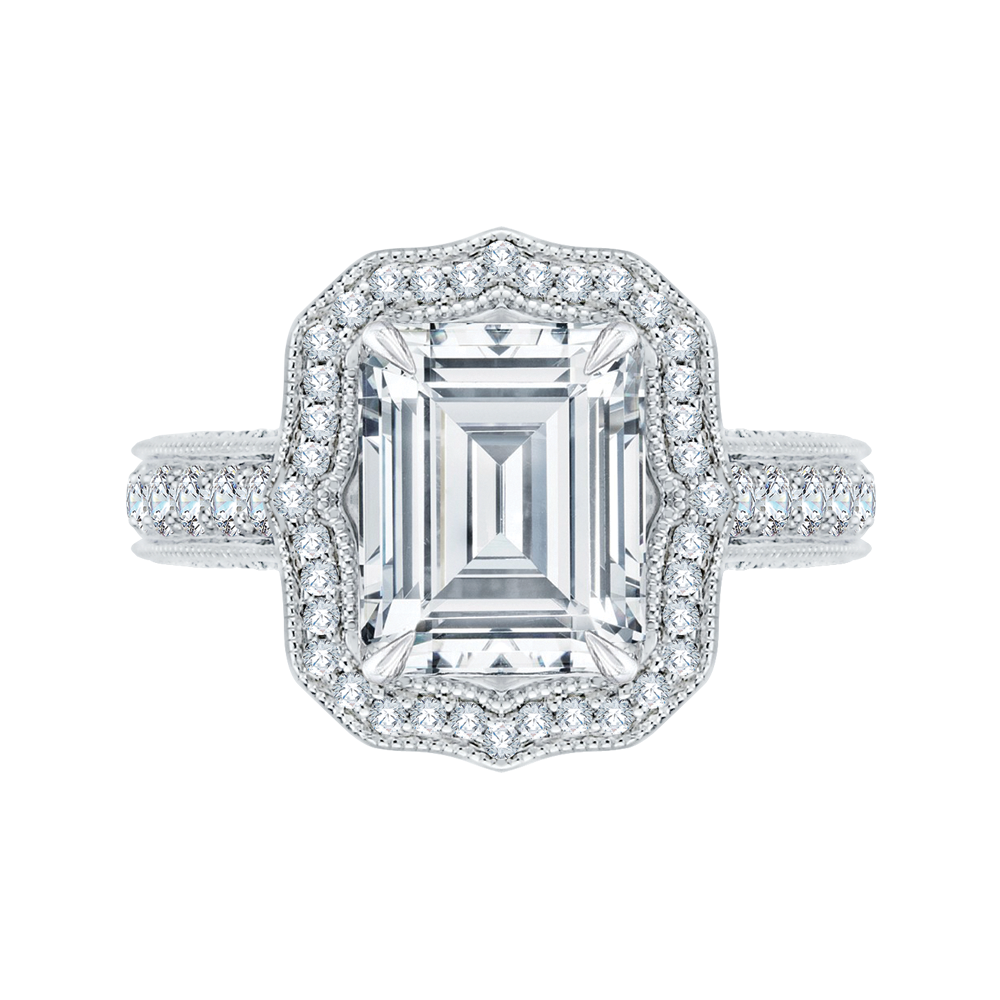 Emerald Cut Diamond Halo Bridal Engagement Ring in 18K White Gold (Semi-Mount)
