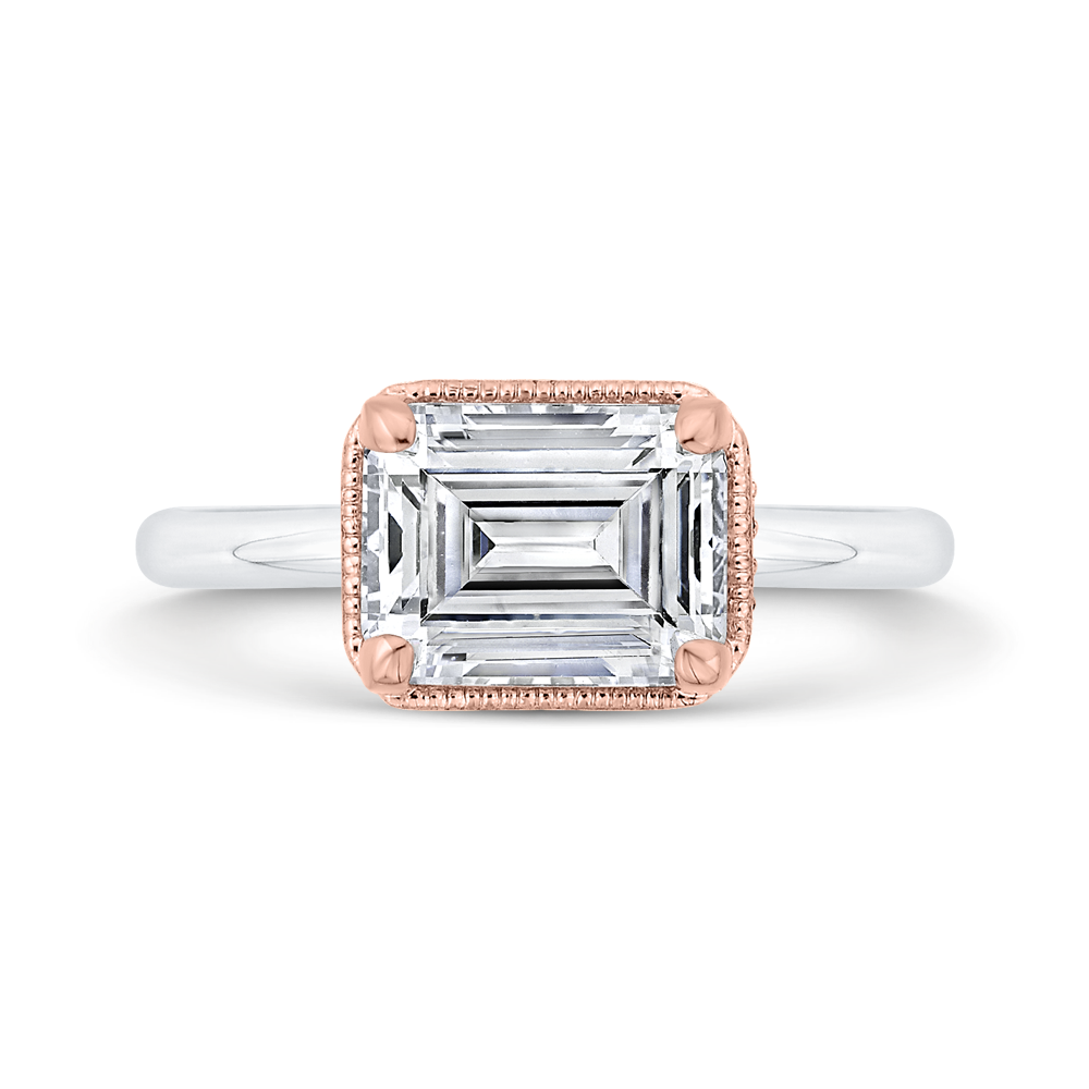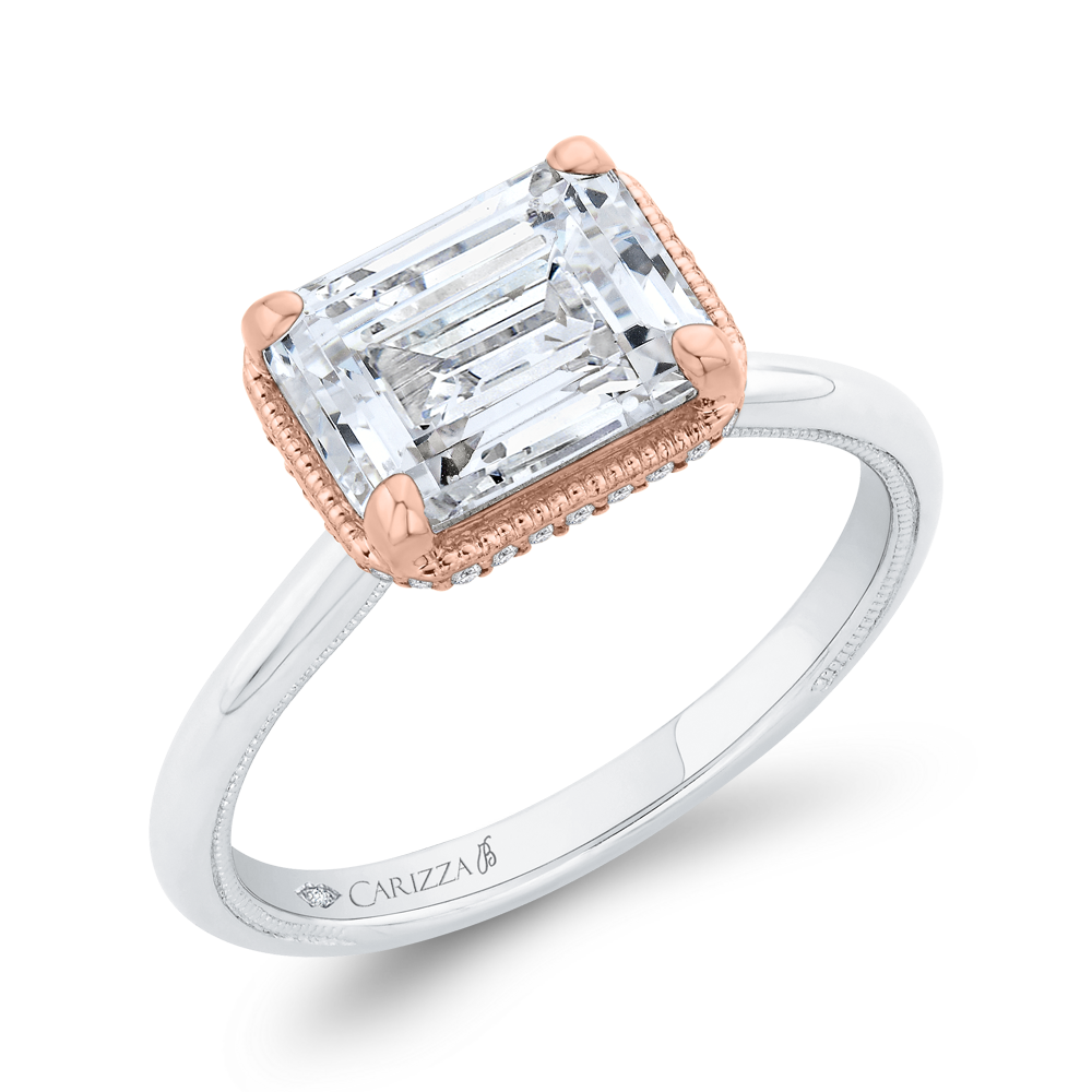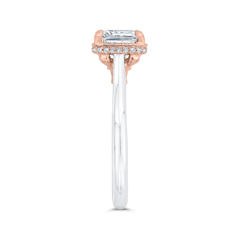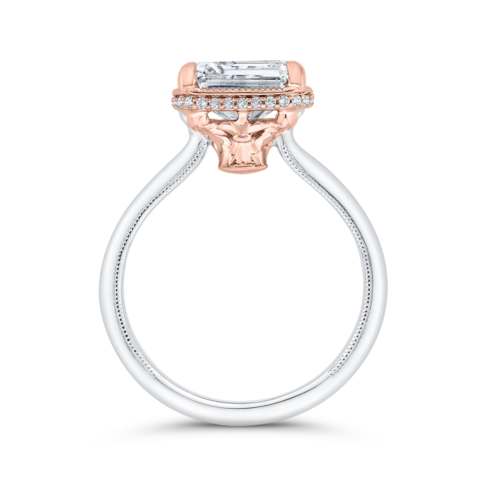 Emerald Cut Diamond Halo Engagement Ring in 14K Two Tone Gold (Semi-Mount)