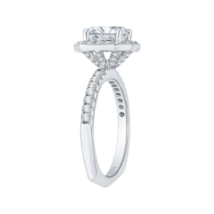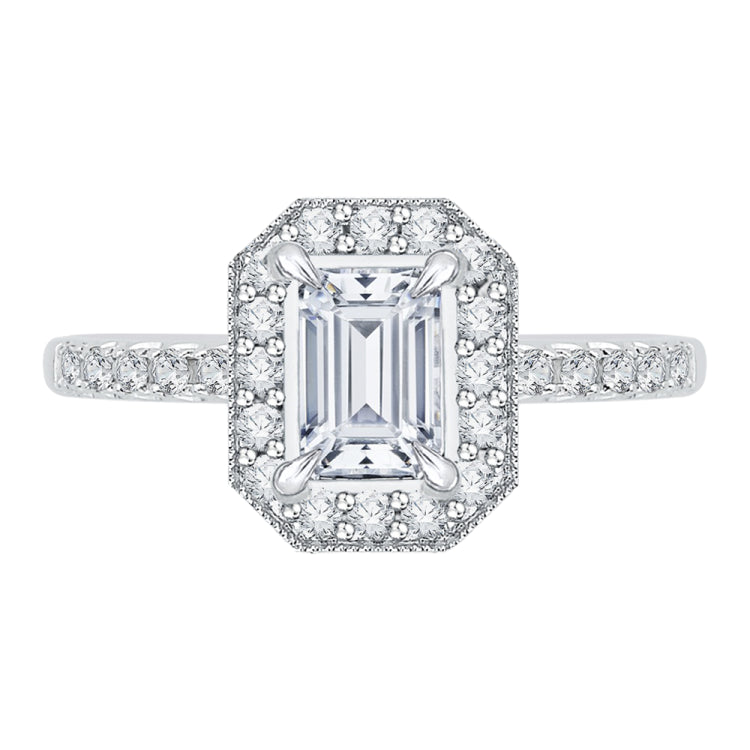 Emerald Cut Diamond Halo Engagement Ring In 14K White Gold (Semi-Mount)