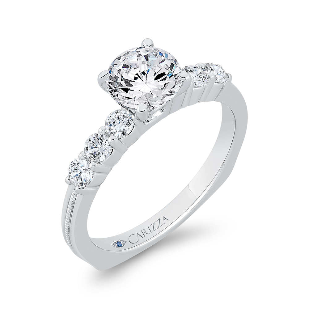 This exquisite Euro Shank Diamond Engagement Ring in 14K White Gold features a stunning semi-mount design that allows you to choose the perfect center stone to complete the look. The elegant euro shank band adds a touch of sophistication and timeless beauty to this classic engagement ring. Crafted with precision and attention to detail, this ring is sure to be cherished for a lifetime.