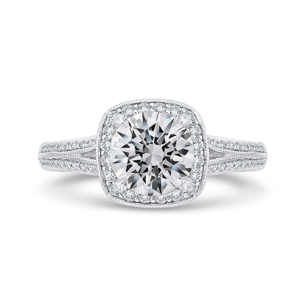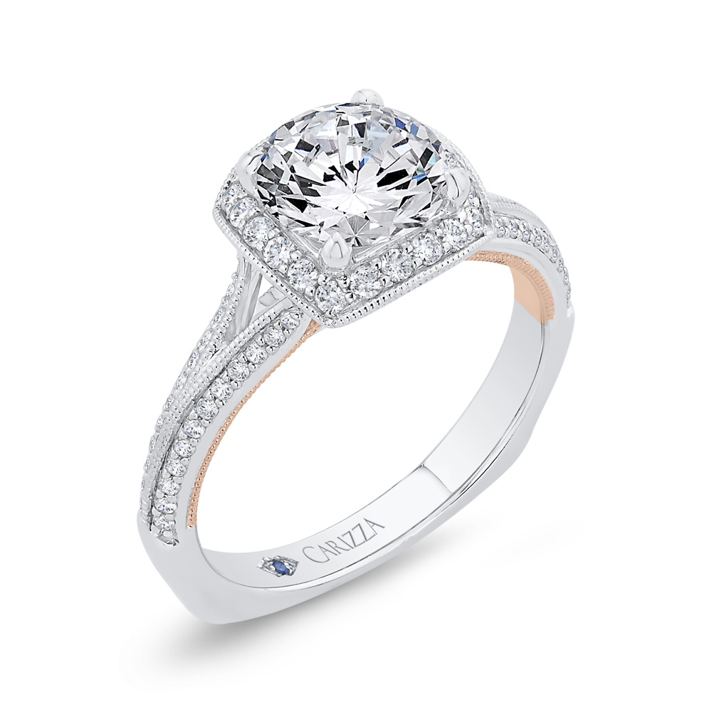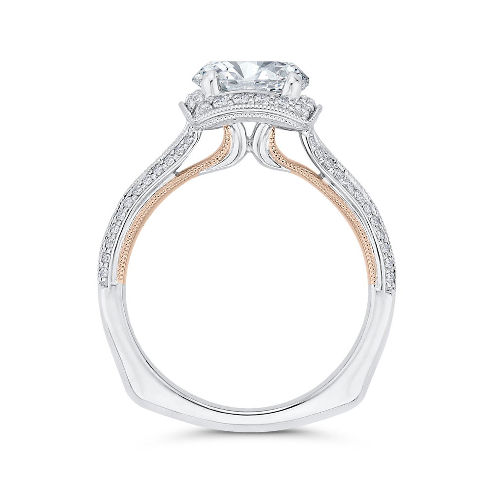 Euro Shank Diamond Halo Engagement Ring in 14K Two Tone Gold (Semi-Mount)
