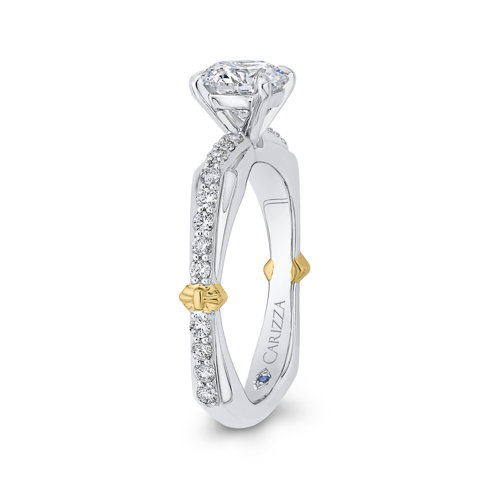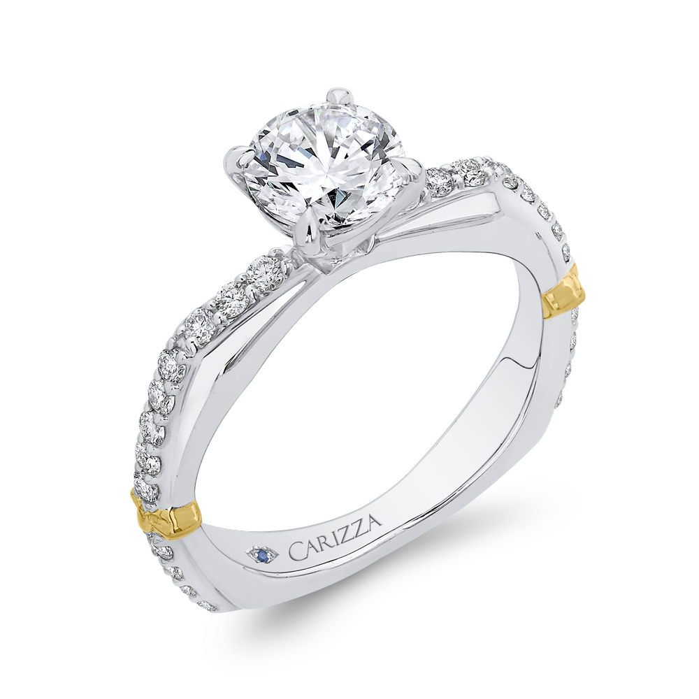 Euro Shank Round Diamond Engagement Ring in 14K Two Tone Gold (Semi-Mount)