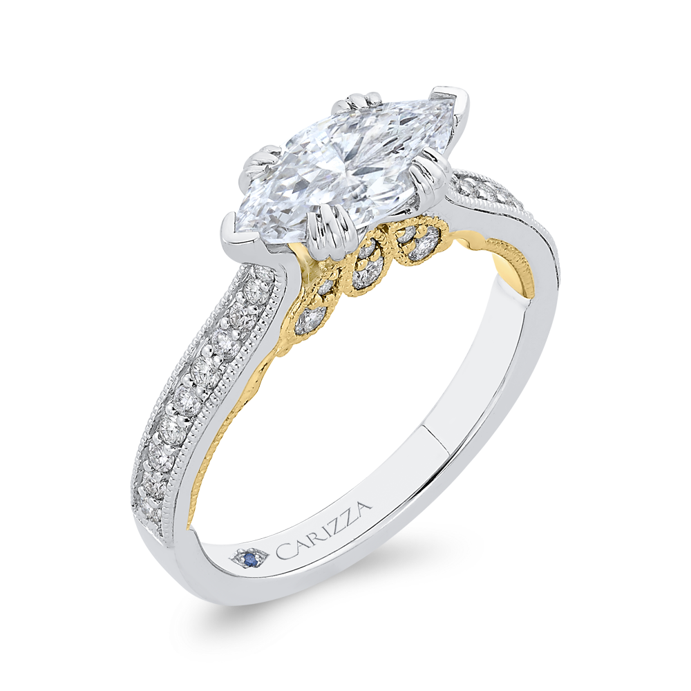 Marquise Cut Diamond Engagement Ring in 14K Two Tone Gold (Semi-Mount)