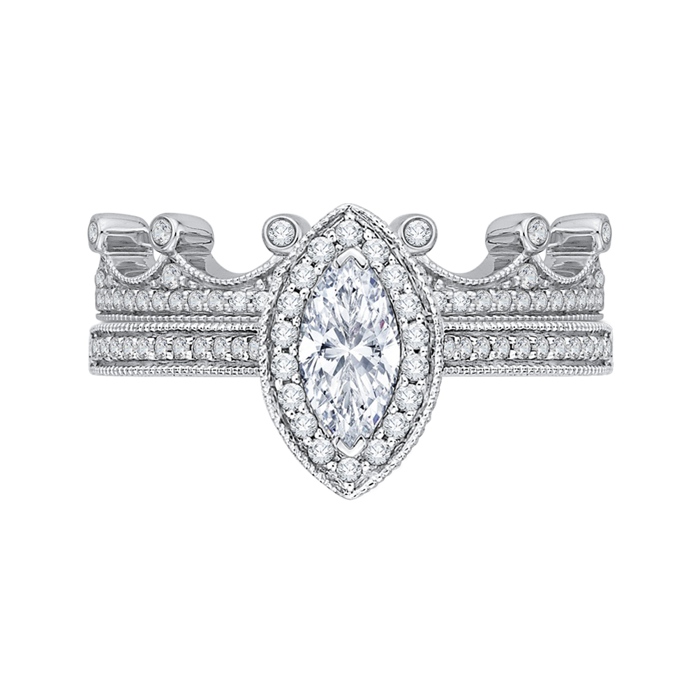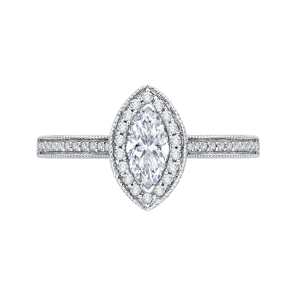 Marquise Cut Diamond Halo Engagement Ring in 14K White Gold