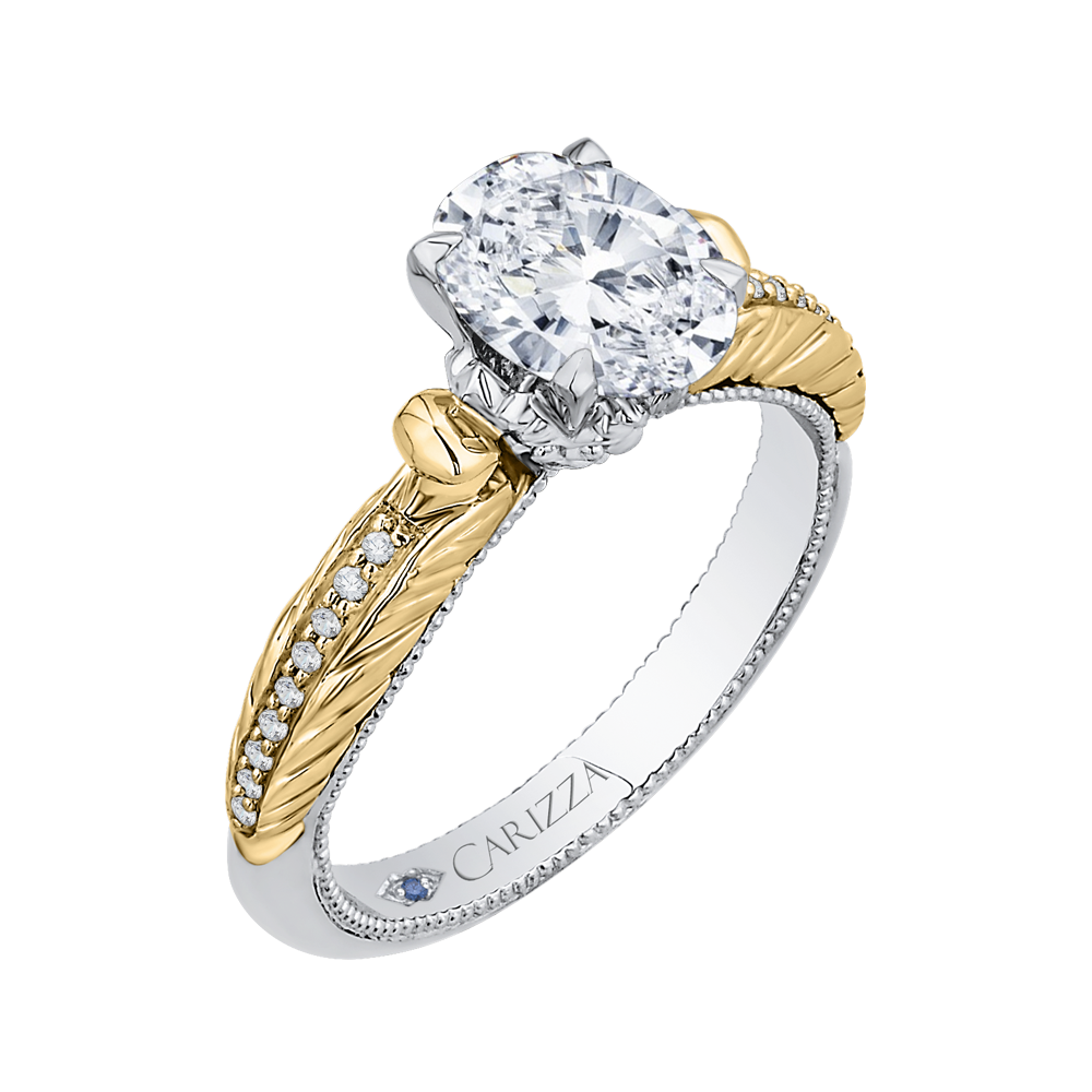 Oval Cut Diamond Engagement Ring in 14K Two Tone Gold (Semi-Mount)